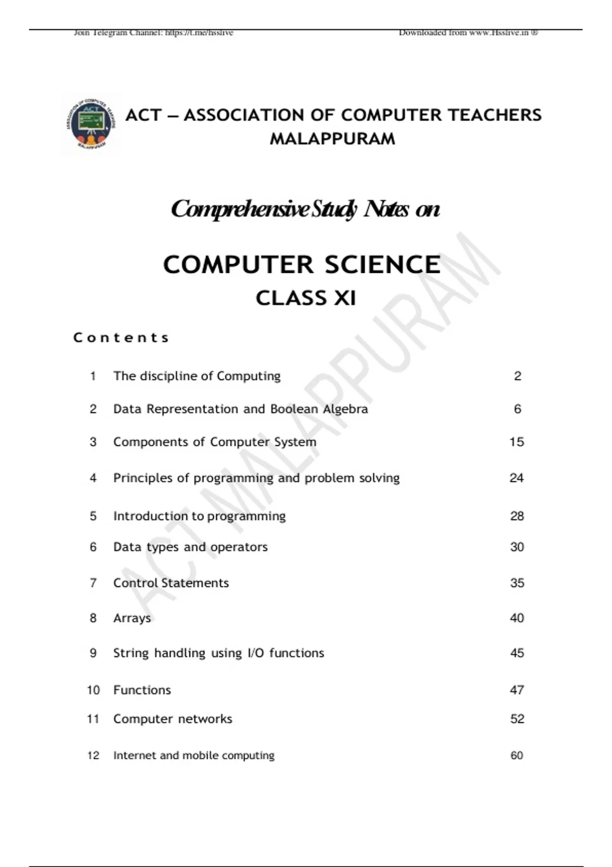 These Computer Science Class XI study notes provide full coverage of the syllabus, including computer systems, data representation, Boolean algebra, logic gates, algorithms, flowcharts, and Python programming fundamentals. Each concept is explained in clear, easy-to-understand language, with examples, exercises, and Python practice problems to reinforce learning. The notes include topics such as functions, loops, strings, lists, tuples, dictionaries, sets, file handling, error handling, cyber safety, and cyber ethics. Structured for quick revision, exam preparation, and self-study, they emphasize concept clarity, practical application, and problem-solving skills. Perfect for last-minute revision or thorough study, these notes guide students to master programming logic, understand theory, retain key points, and confidently perform better in school exams and assessments. Ideal for Class XI students seeking structured, high-quality Computer Science notes.
