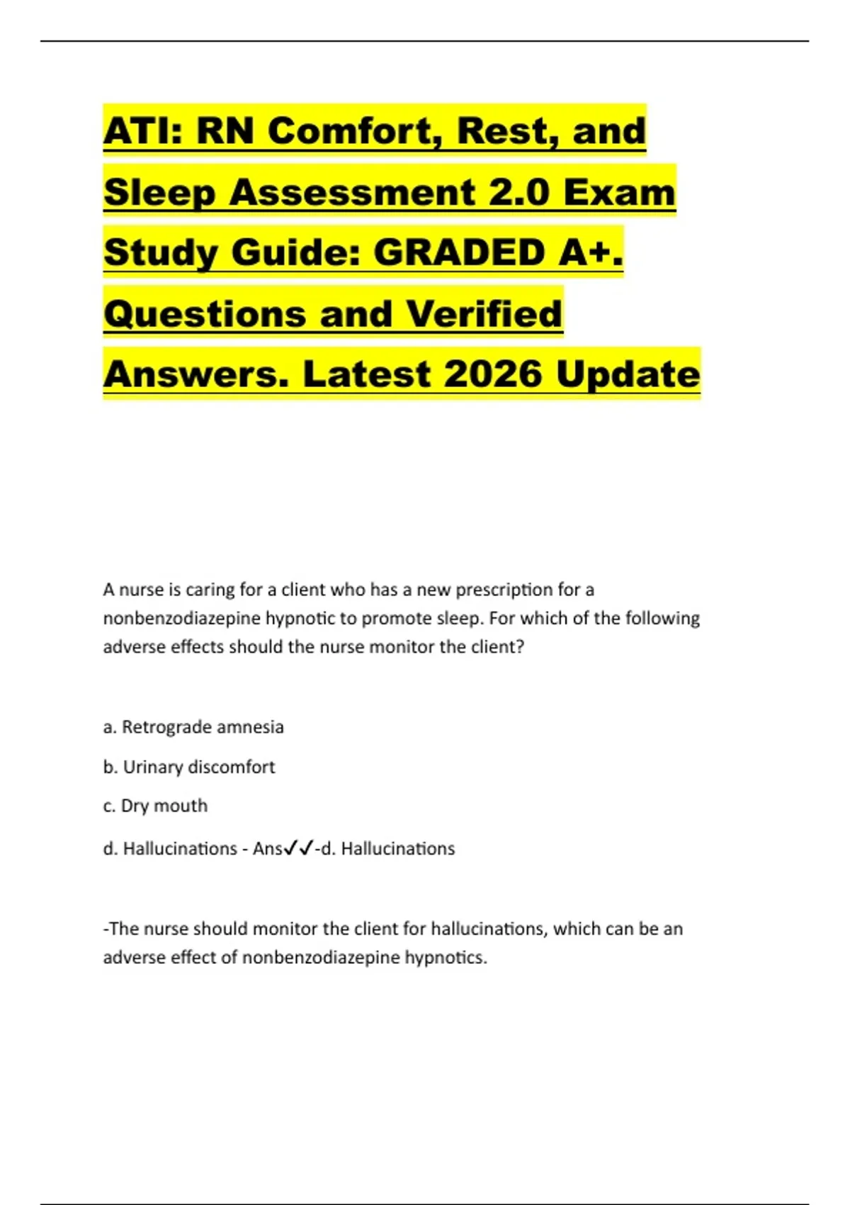 d. Hallucinations - Ans✔✔-d. Hallucinations
