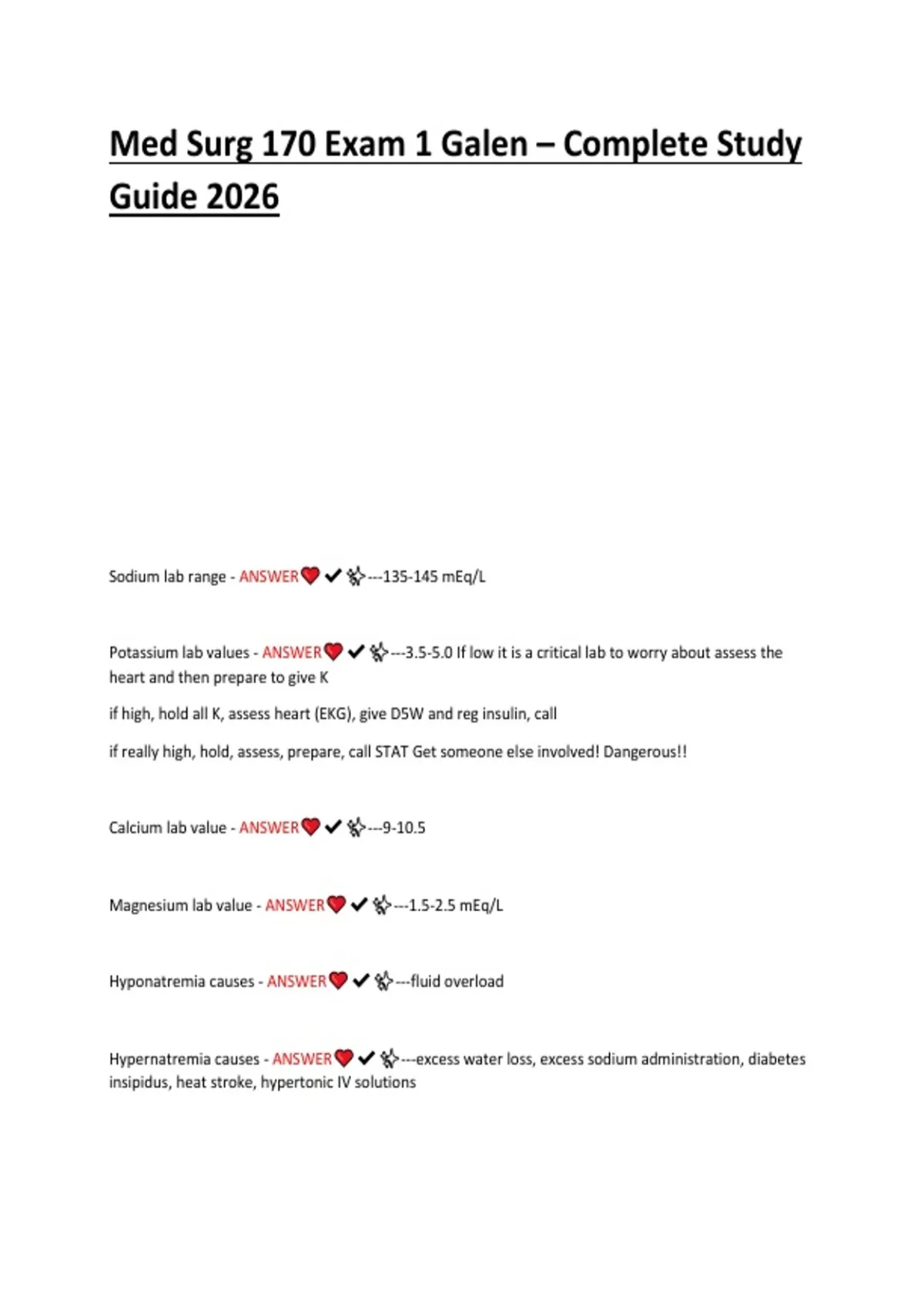 Med-Surg 170 Exam 1 Galen – Complete Study Guide 2026