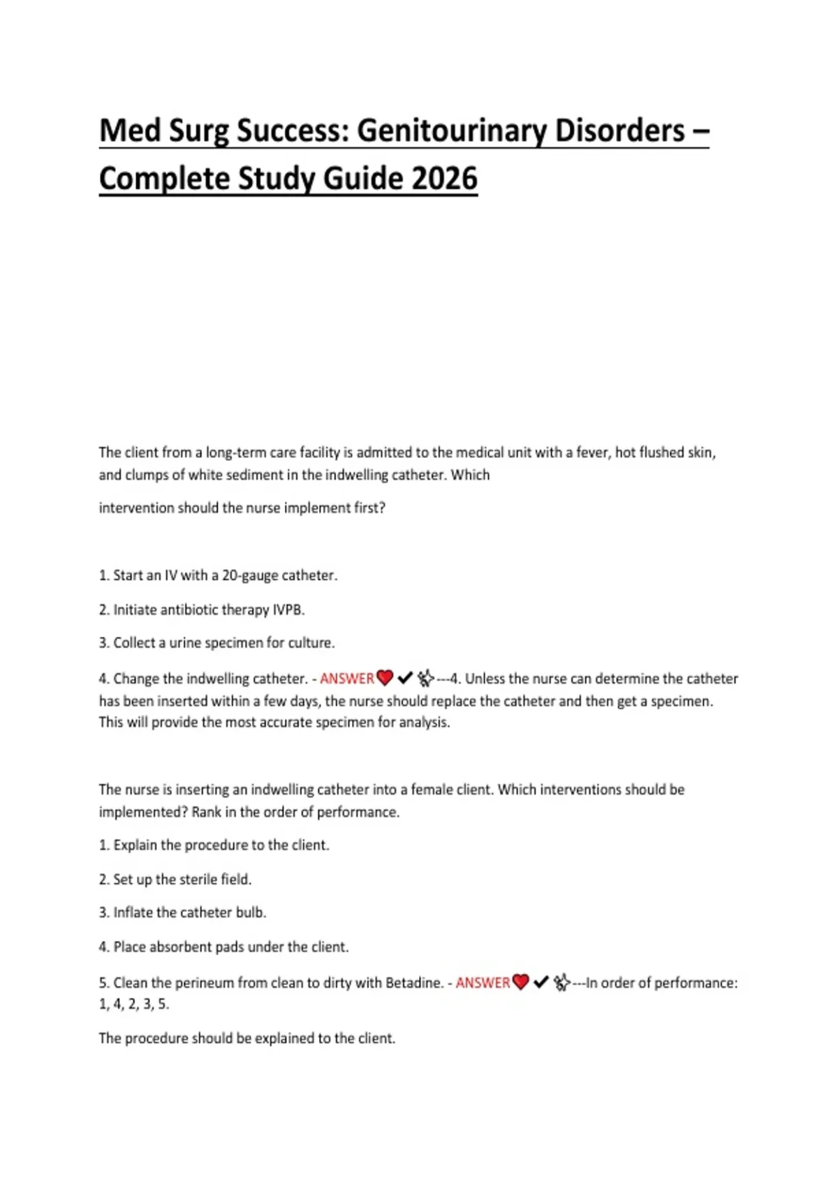 4. Tell the client to void every five (5) to six (6) hours. - ANSWER ✔✨---3. The client should be