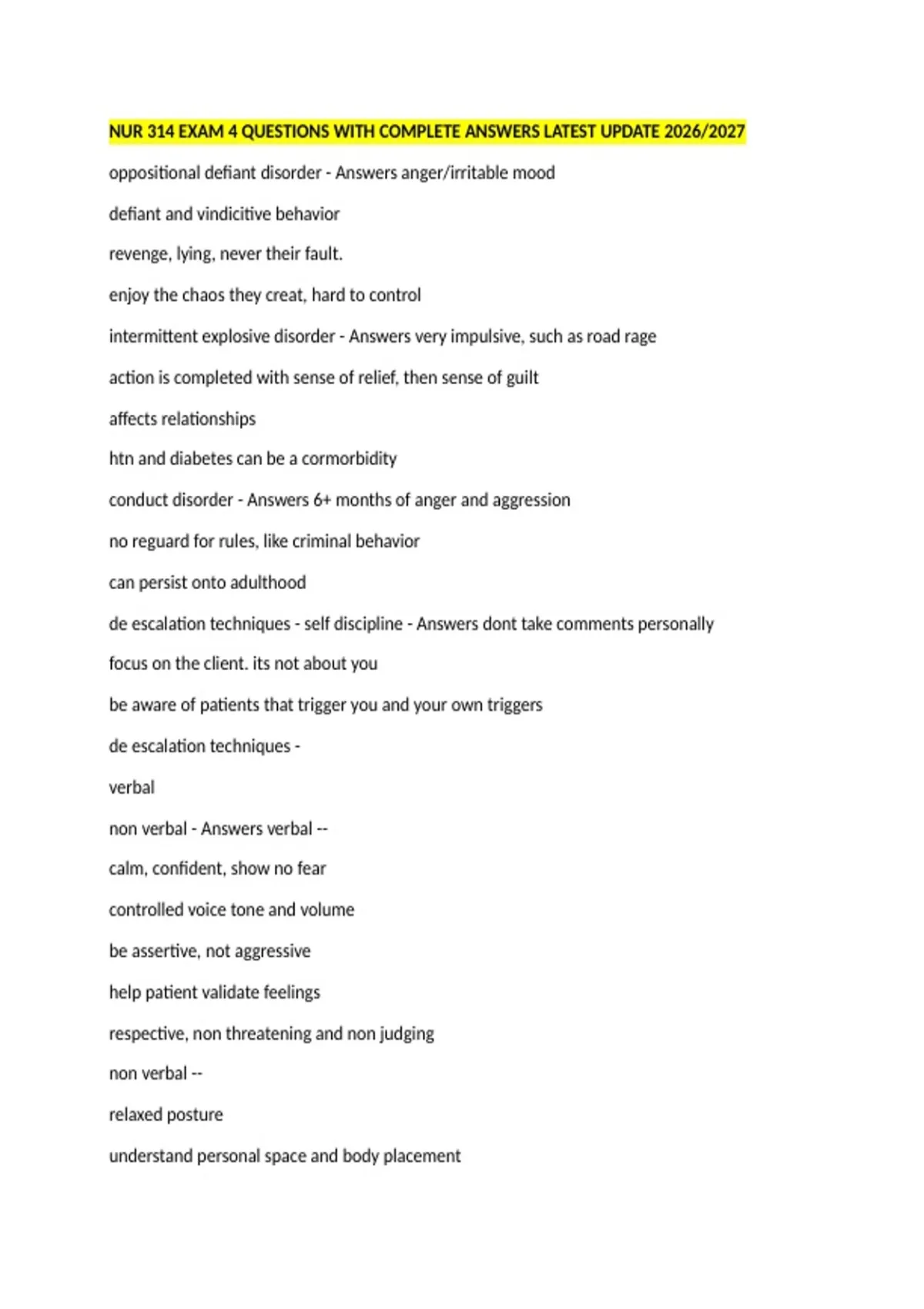 conduct disorder - Answers 6+ months of anger and aggression