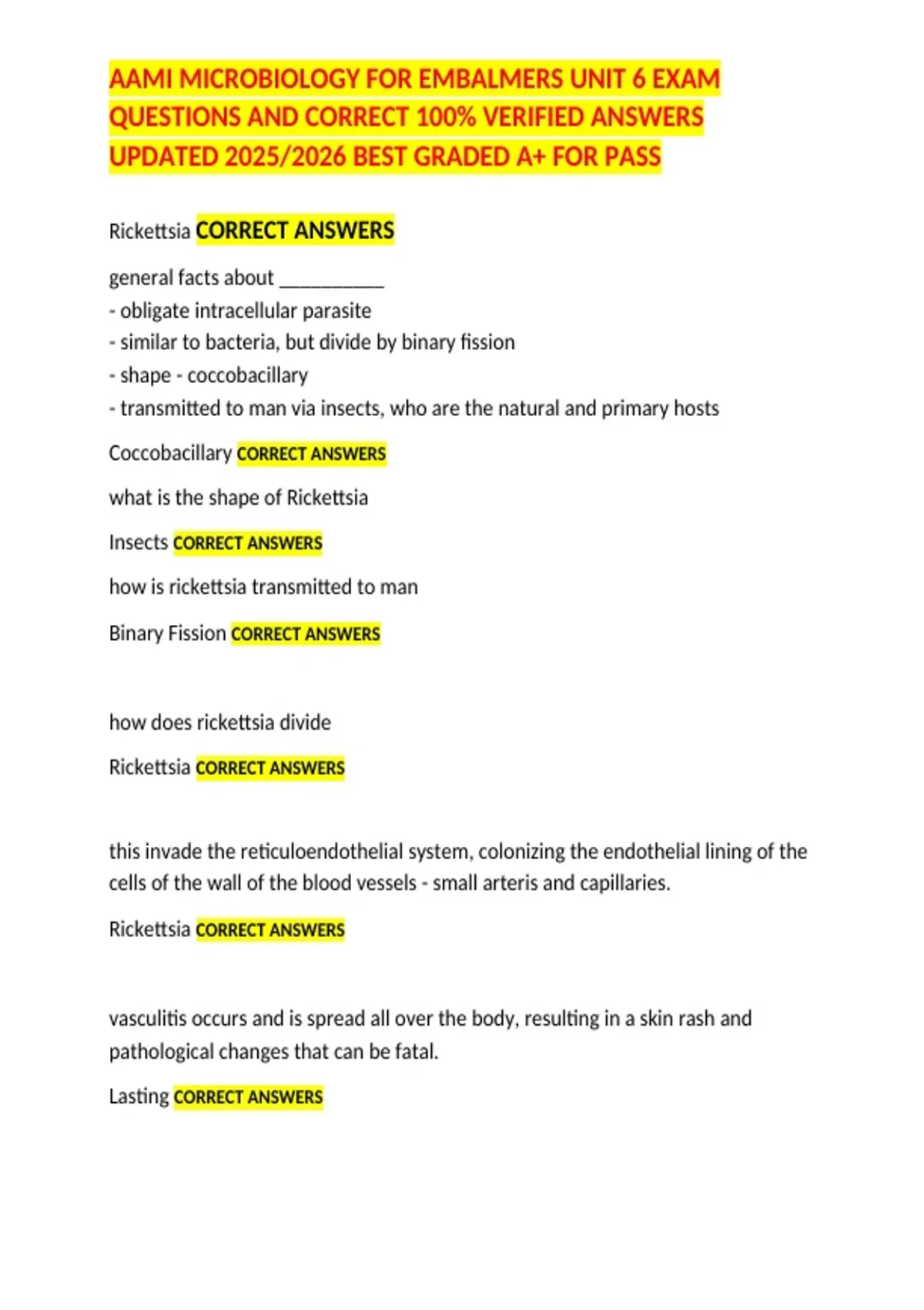 , AAMI MICROBIOLOGY FOR EMBALMERS UNIT 6 EXAM
