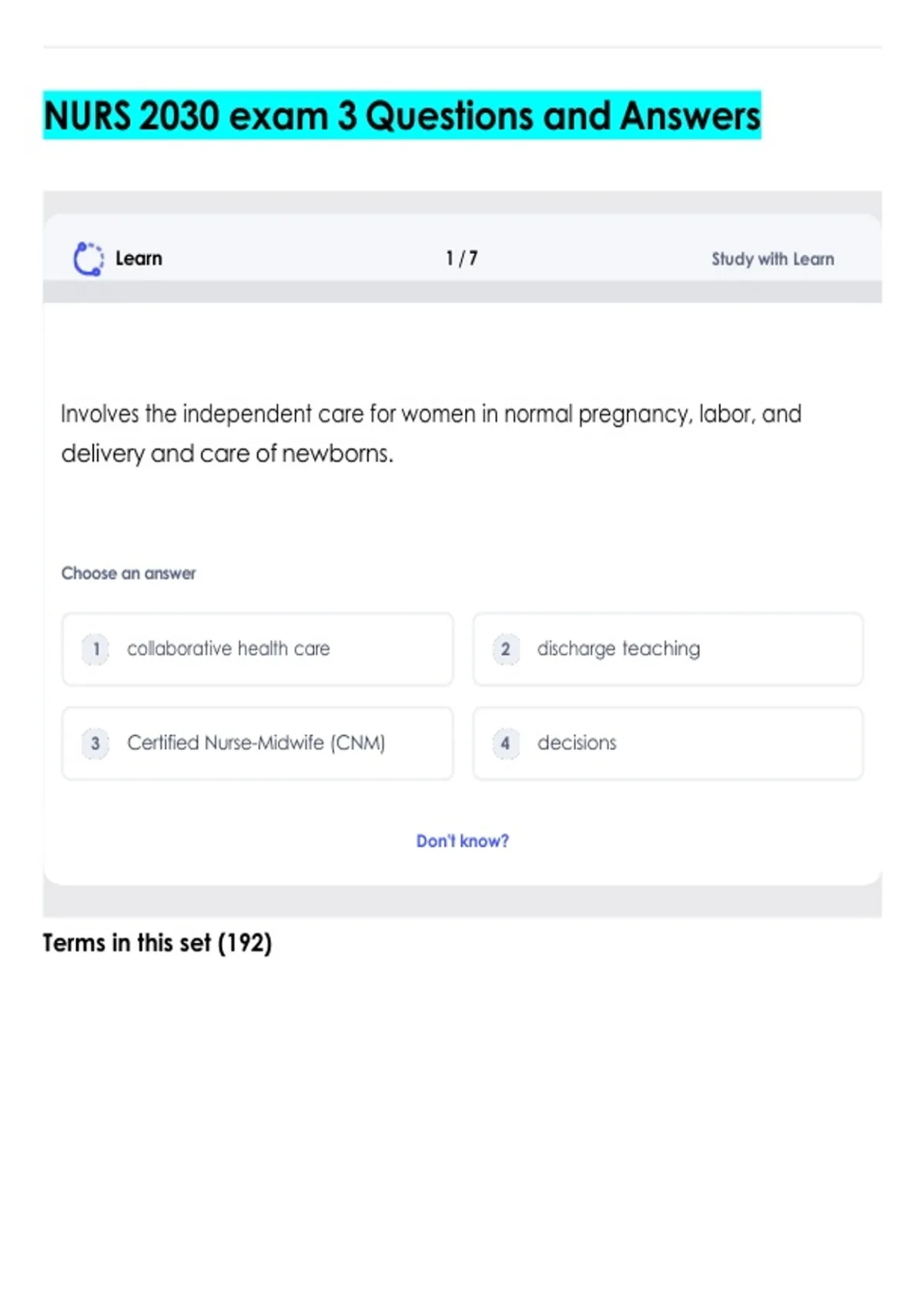 Learn 1/7 Study with Learn