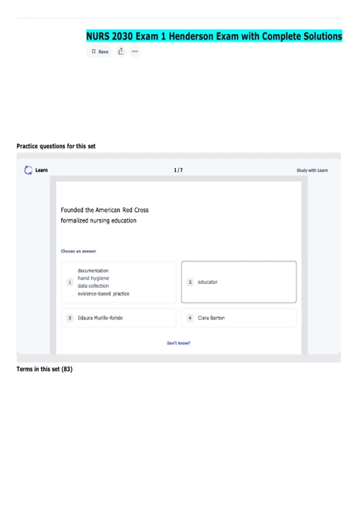 NURS 2030 Exam 1 Henderson Exam with Complete Solutions