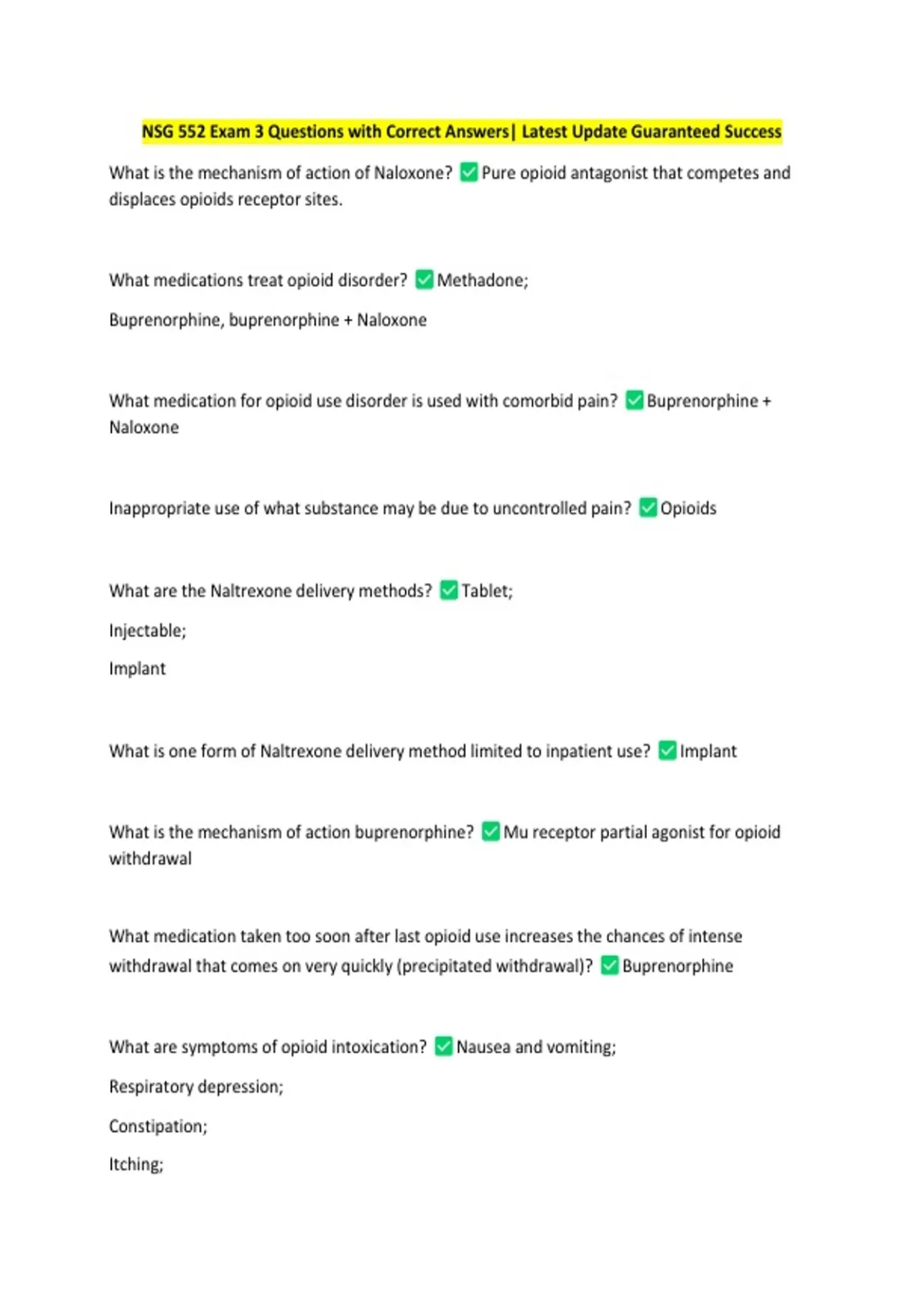 NSG 552 Exam 3 Questions with Correct Answers| Latest Update Guaranteed Success