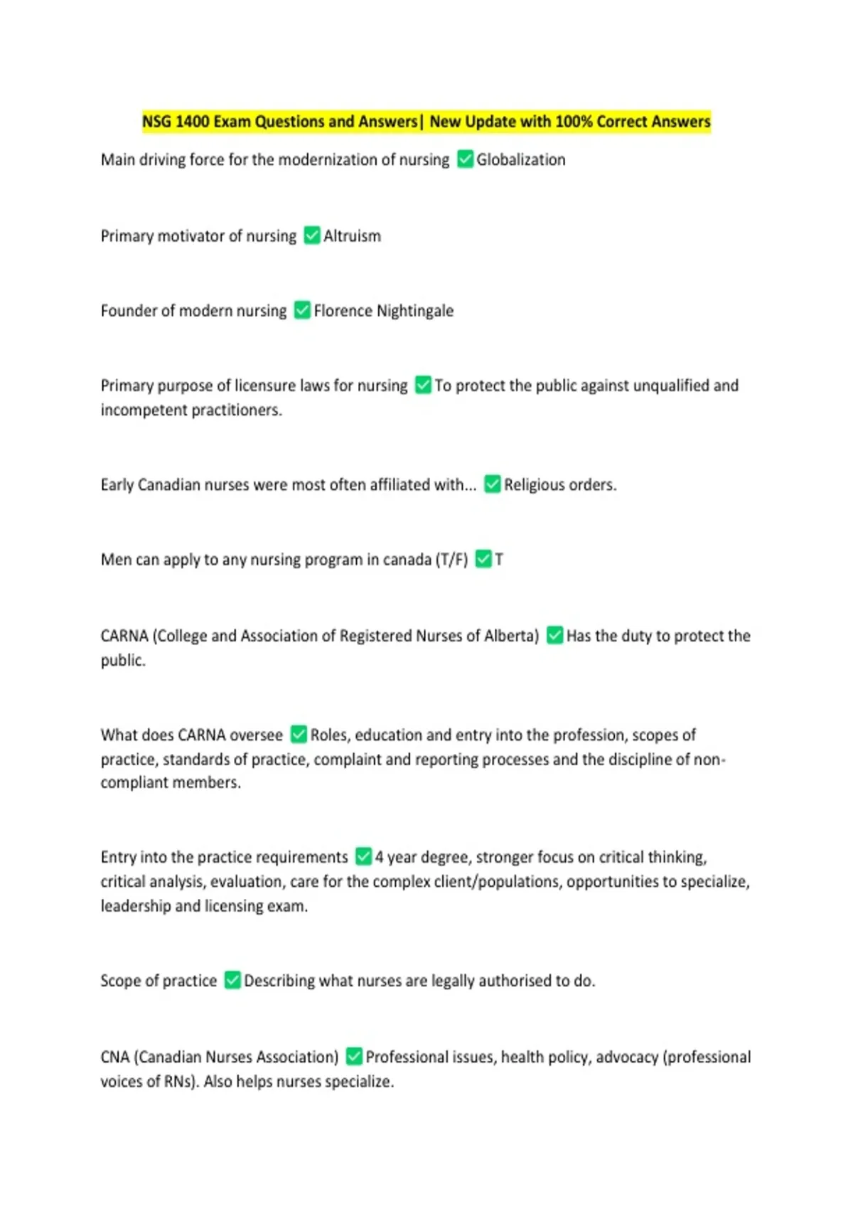 NSG 1400 Exam Questions and Answers| New Update with 100% Correct Answers