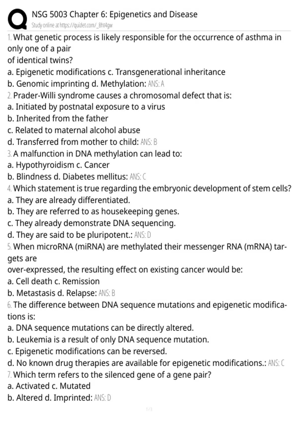NSG 5003 Chapter 6: Epigenetics and Disease