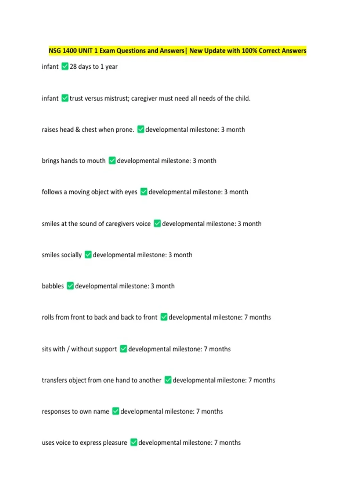 NSG 1400 UNIT 1 Exam Questions and Answers| New Update