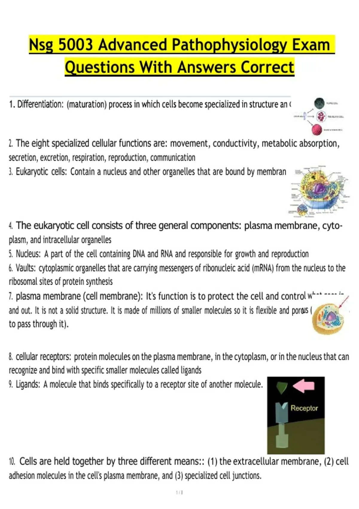 NSG 5003 ADVANCED PATHOPHYSIOLOGY EXAM QUESTIONS WITH ANSWERS CORRECT