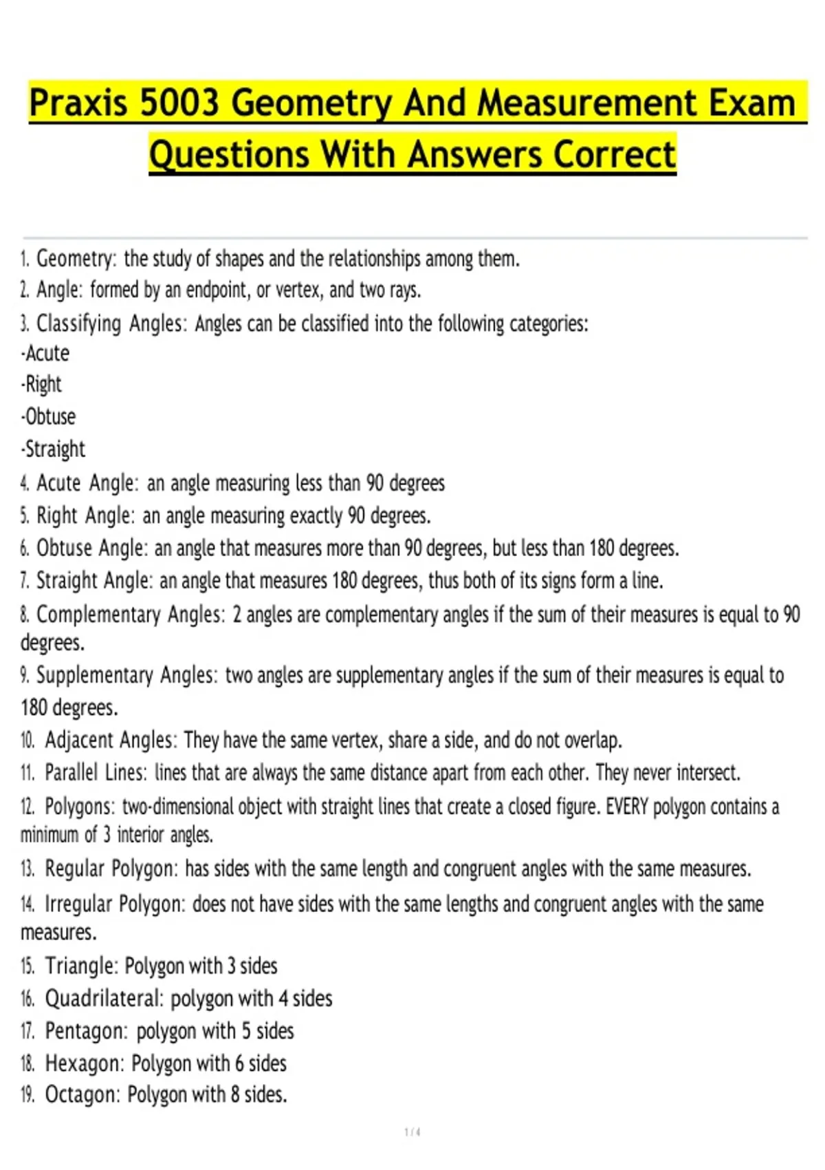 19. Octagon: Polygon with 8 sides.
