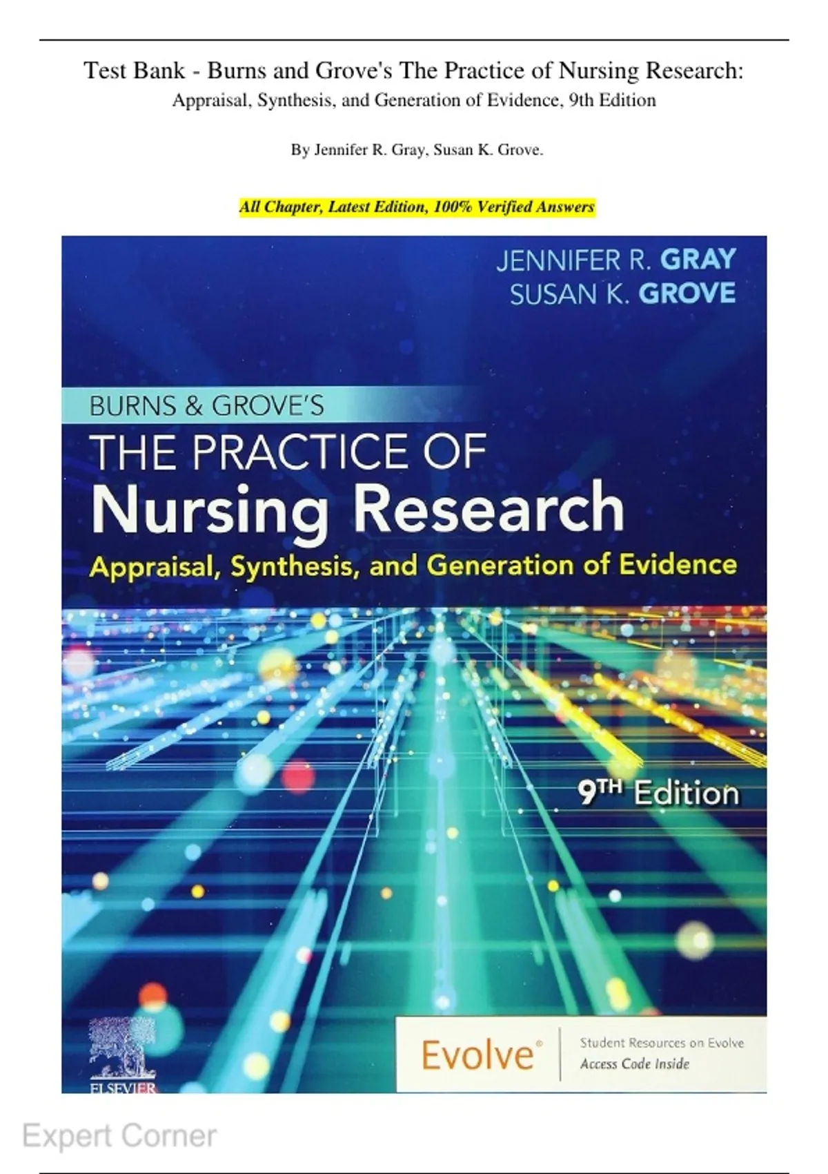 Test Bank - Burns and Grove’s The Practice of Nursing Research: Appraisal, Synthesis, and Generation of Evidence, 9th Edition is a gold-standard textbook for nursing students, educators, and clinicians seeking to master research methods that underpin evidence-based practice. Written by respected nurse scholars Jennifer R. Gray and Susan K. Grove, this award-winning text bridges the gap between research theory and real-world clinical application, empowering readers to critically appraise existing evidence, synthesize research findings, and actively participate in research and quality improvement initiatives. The 9th edition reflects the evolving landscape of nursing research in the digital era, with extensively updated content on online data collection, contemporary research tools, and emerging methodologies. It offers clear, step-by-step guidance on quantitative, qualitative, mixed-methods, and outcomes research, supported by rich, up-to-date examples drawn from high-quality nursing literature around the world. Organized into five logically structured units, the book guides readers from foundational research concepts through the full research process, evidence-based healthcare application, data analysis and dissemination, and finally to proposing and securing research funding.