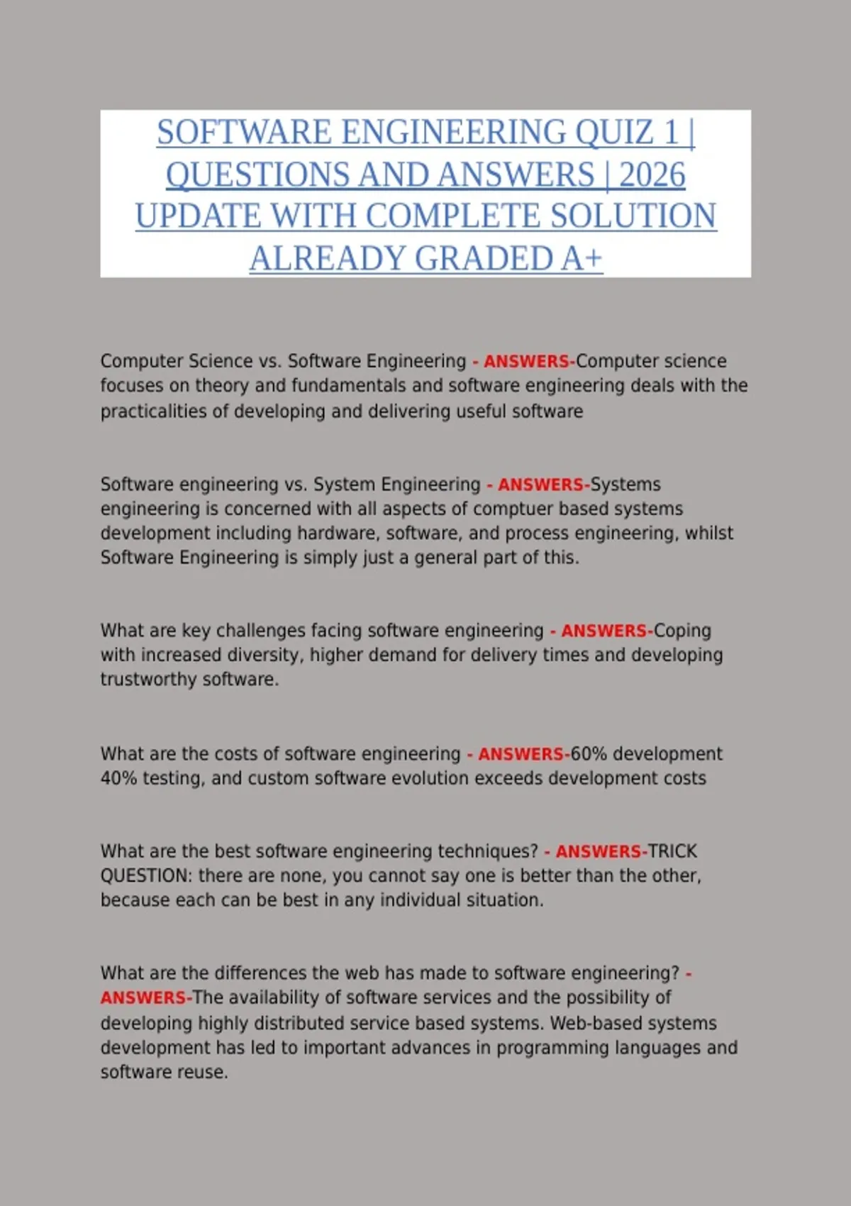 Computer Science vs. Software Engineering - ANSWERS-Computer science