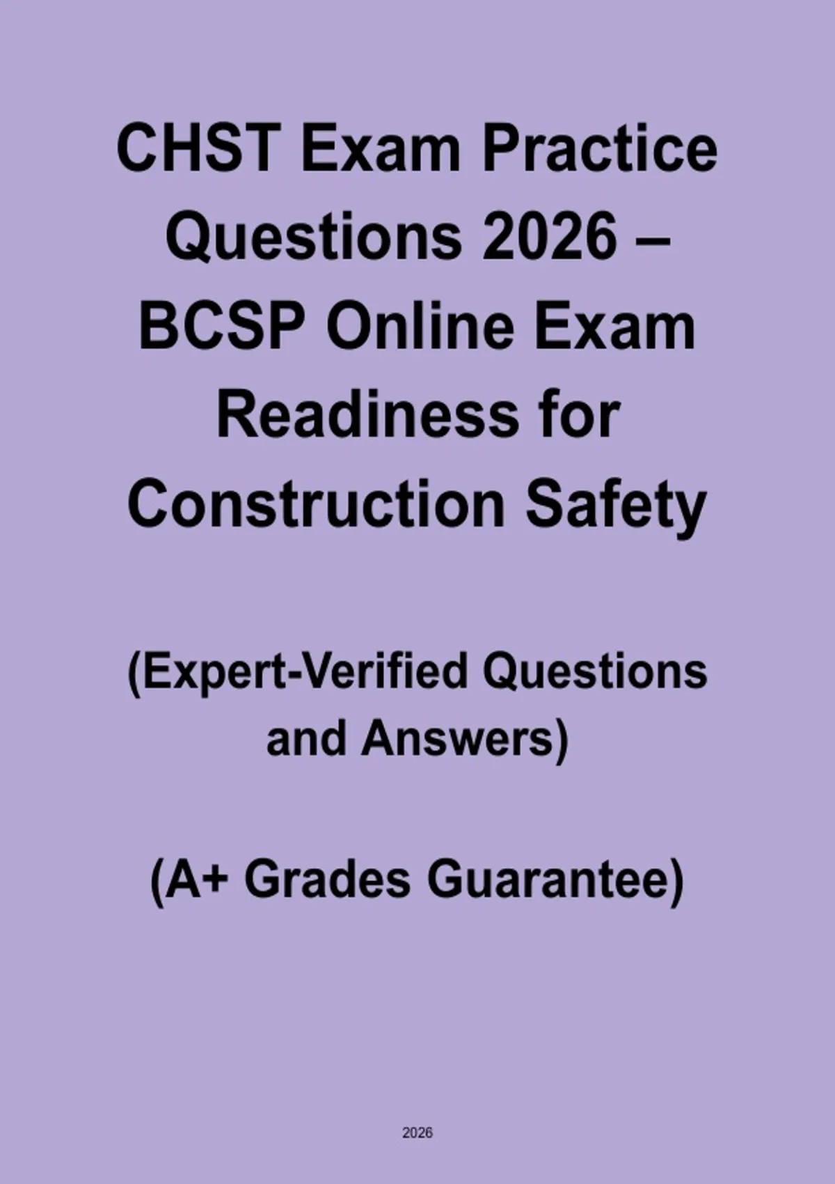 This CHST Exam Practice Questions 2026 PDF is a BCSP-aligned study resource designed to ensure online exam readiness for construction safety professionals. Featuring realistic, exam-style questions covering hazard recognition, safety management systems, health and environmental hazards, and regulatory compliance, this guide provides focused practice and confidence-building preparation to help candidates pass the 2026 CHST certification exam successfully.