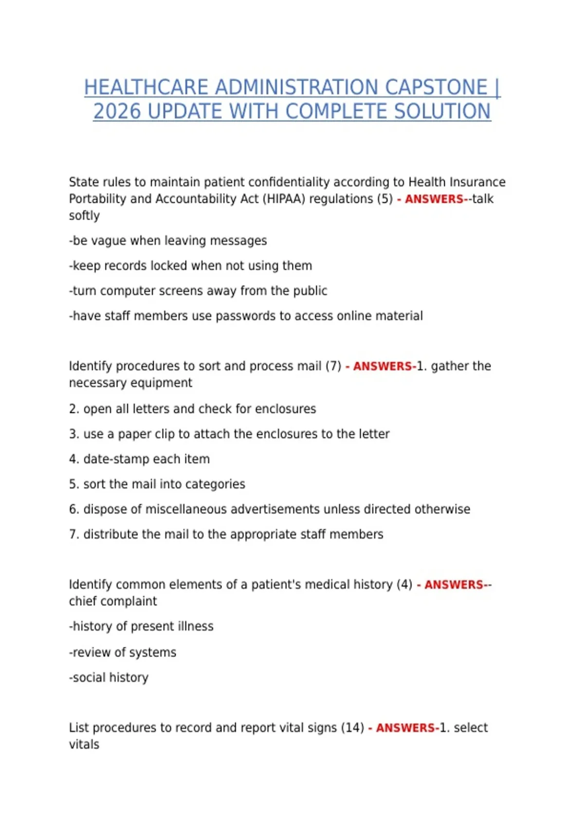 Identify procedures to sort and process mail (7) - ANSWERS-1. gather the