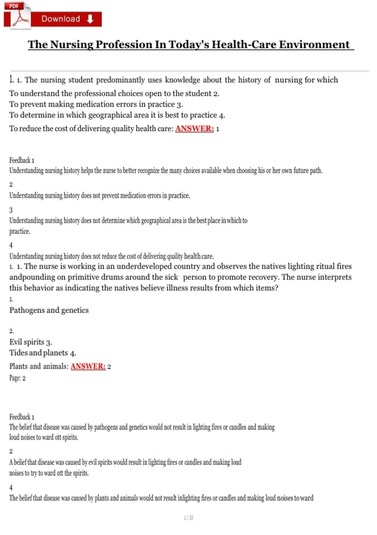 1. 1. The nurse is working in an underdeveloped country and observes the natives lighting ritual fires