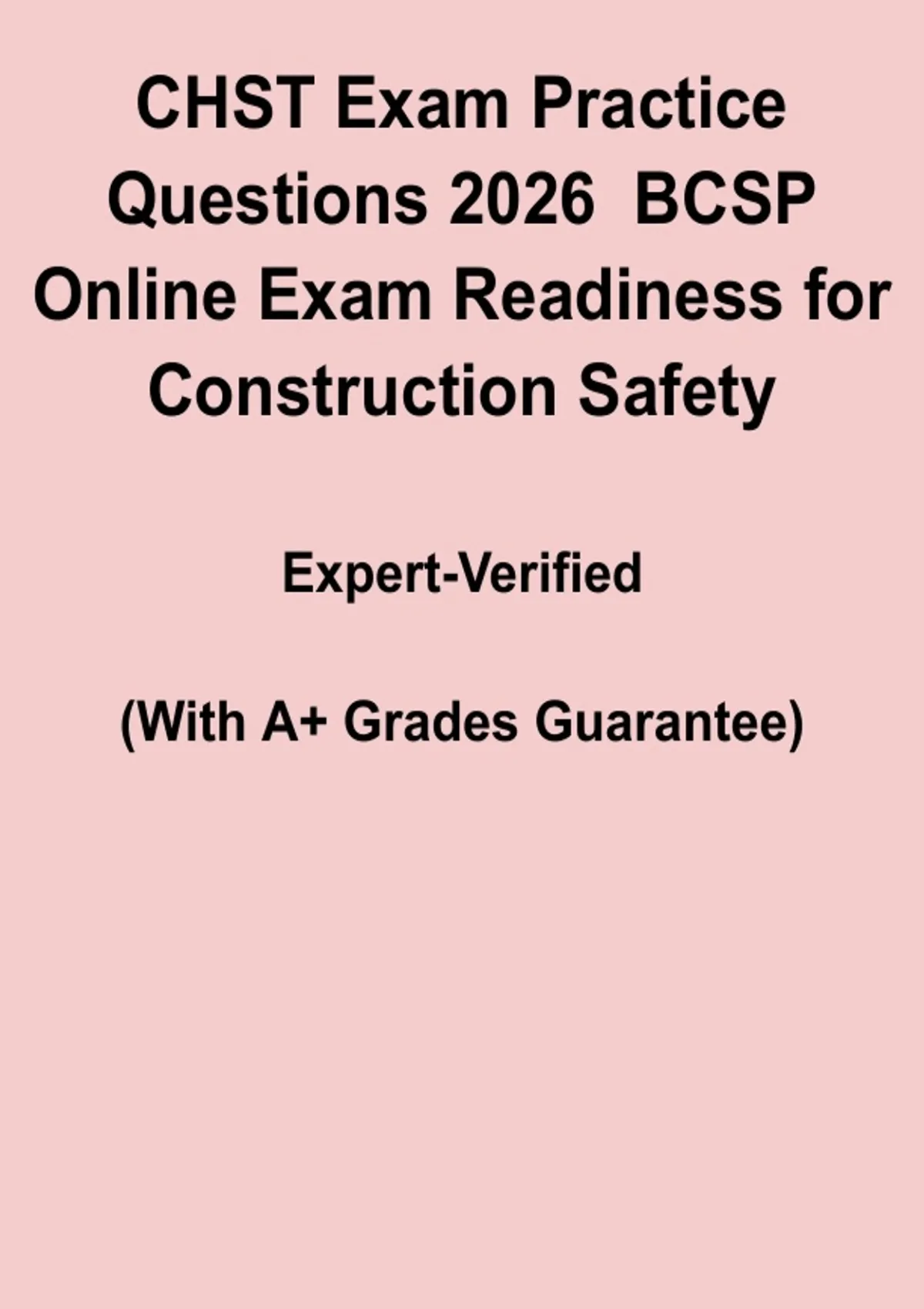 This CHST Exam Practice Questions 2026 – BCSP Online Exam Readiness PDF is a focused exam preparation resource designed for candidates preparing for the Construction Health and Safety Technician (CHST) certification through the Board of Certified Safety Professionals (BCSP). It includes realistic, exam-style practice questions with detailed explanations covering construction safety management, hazard recognition, risk assessment, regulatory compliance, and professional responsibilities. Ideal for self-assessment, targeted review, and final exam preparation, this guide helps learners reinforce knowledge, identify weak areas, and confidently prepare for the CHST Certification Exam in 2026.