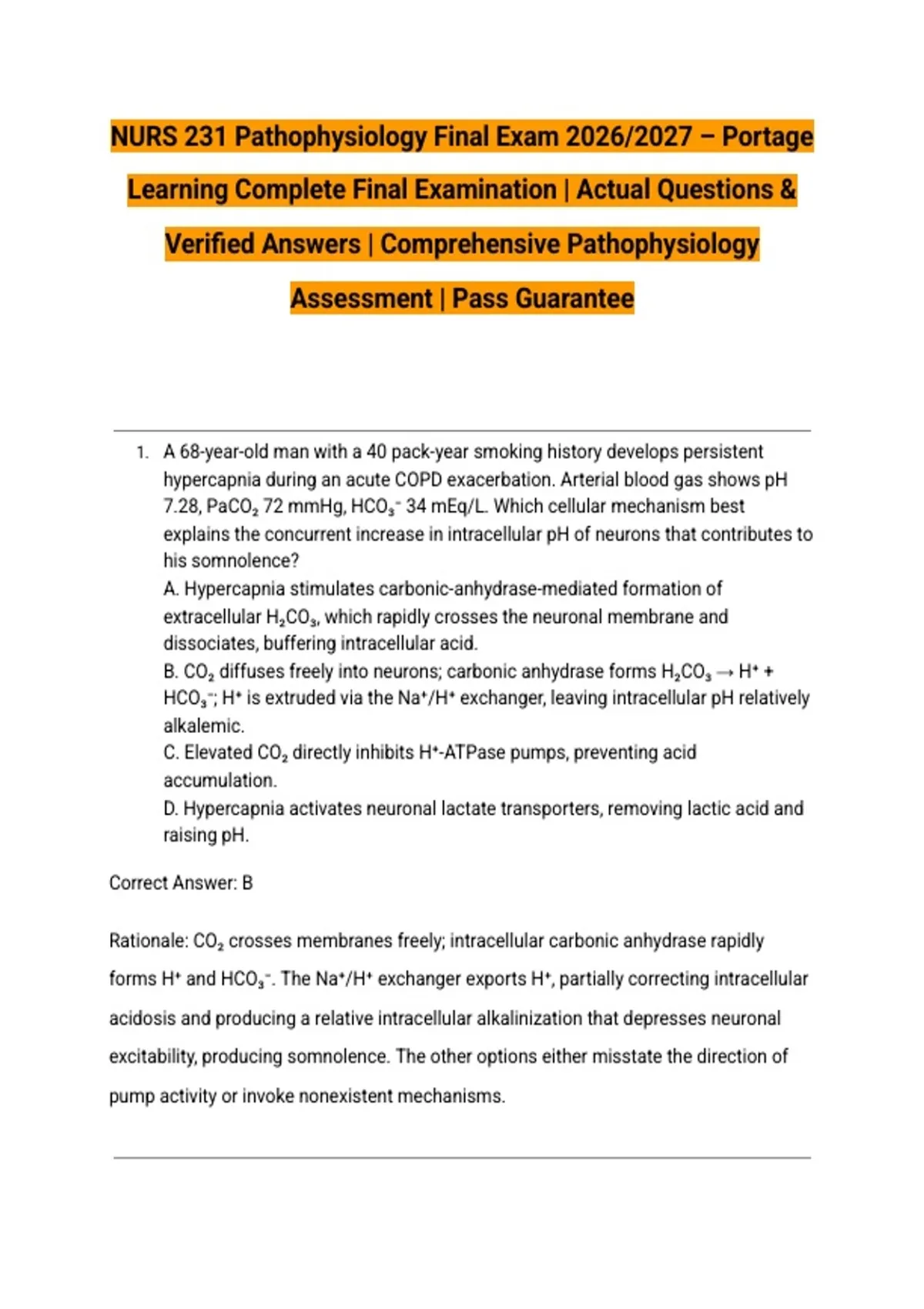 NURS 231 Pathophysiology Final Exam 2026/2027 – Portage Learning Complete Final Examination | Actual Questions & Verified Answers | Comprehensive Pathophysiology Assessment | Pass Guarantee