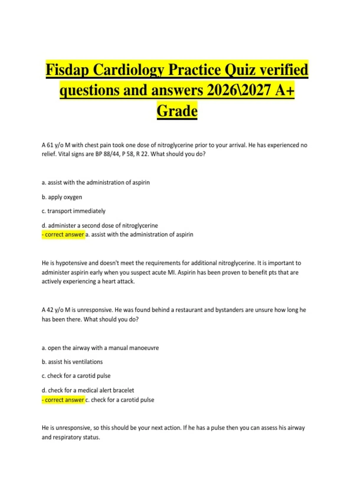 - correct answer a. assist with the administration of aspirin