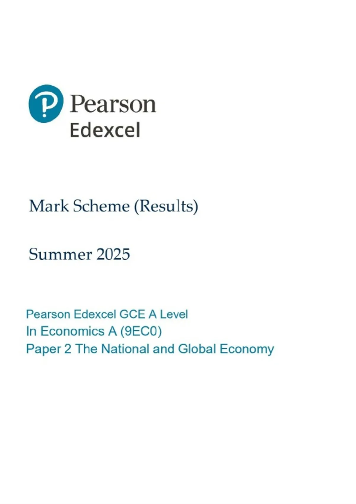 A-Level EDEXCEL 2025 Economics A Paper 2 Mark Scheme