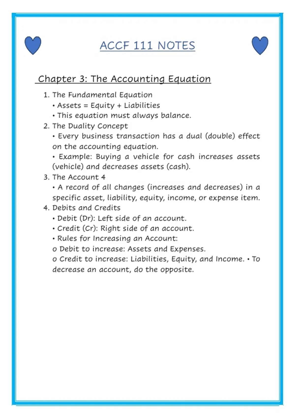 Summary of 1 pages for the course Introductory Financial Accounting at Unisa (SUMMARISED NOTES)