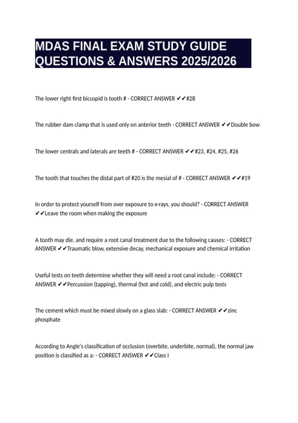 MDAS FINAL EXAM STUDY GUIDE QUESTIONS & ANSWERS