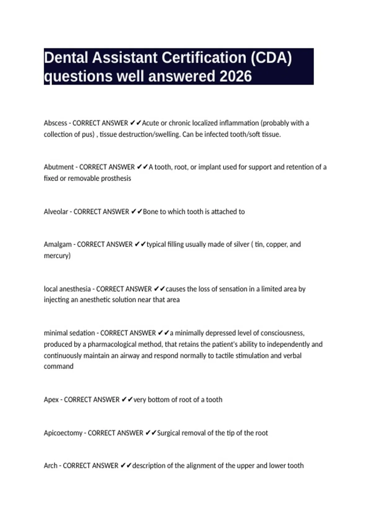 Dental Assistant Certification (CDA) questions well answered 2026