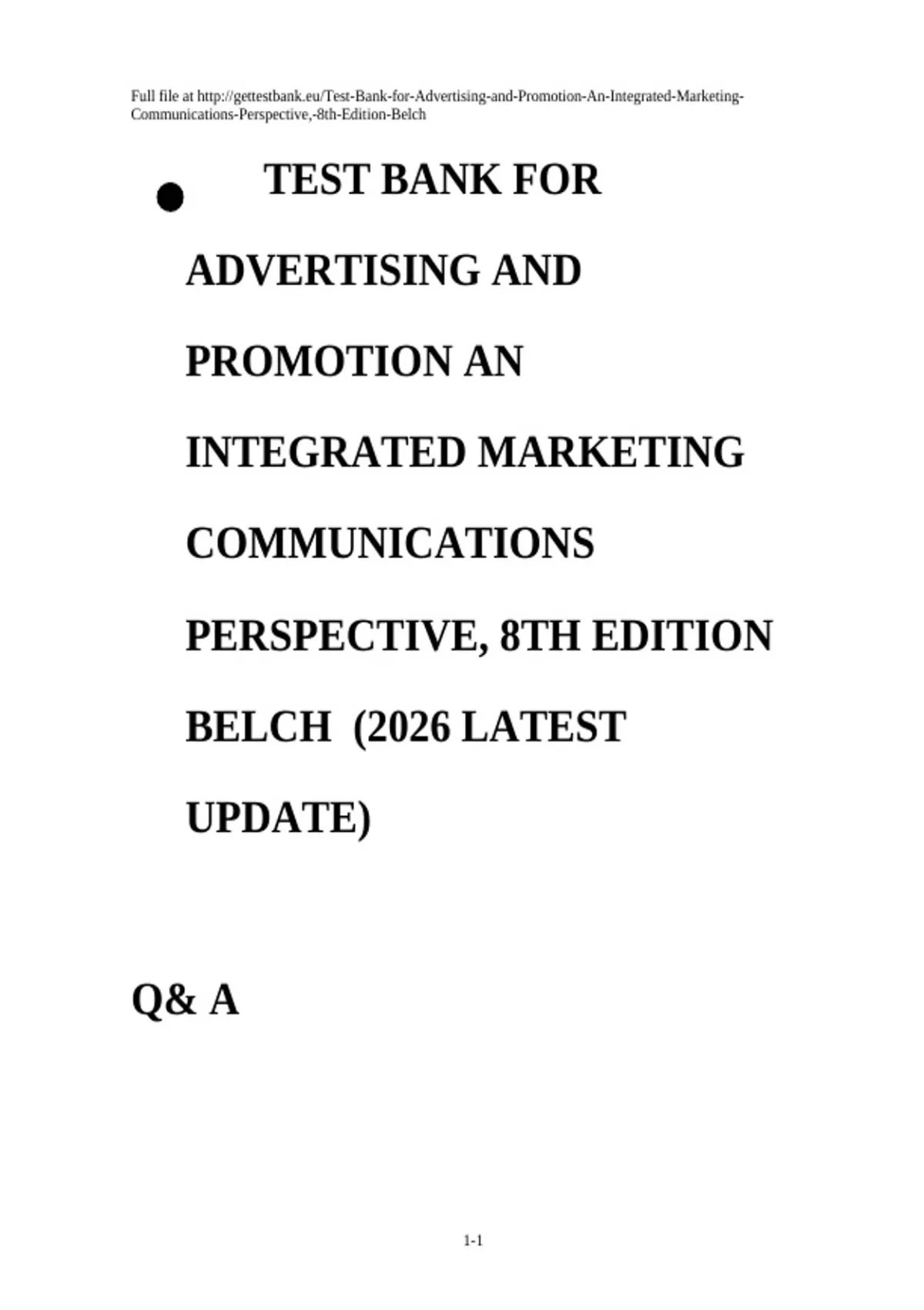 Test Bank For Advertising and Promotion An Integrated Marketing Communications Perspective, 8th Edition by Belch (2026 LATEST UPDATE)