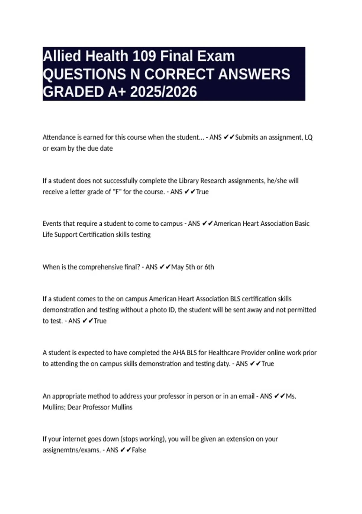 The only accepted type of BLS certification to meet the course requirements. - ANS