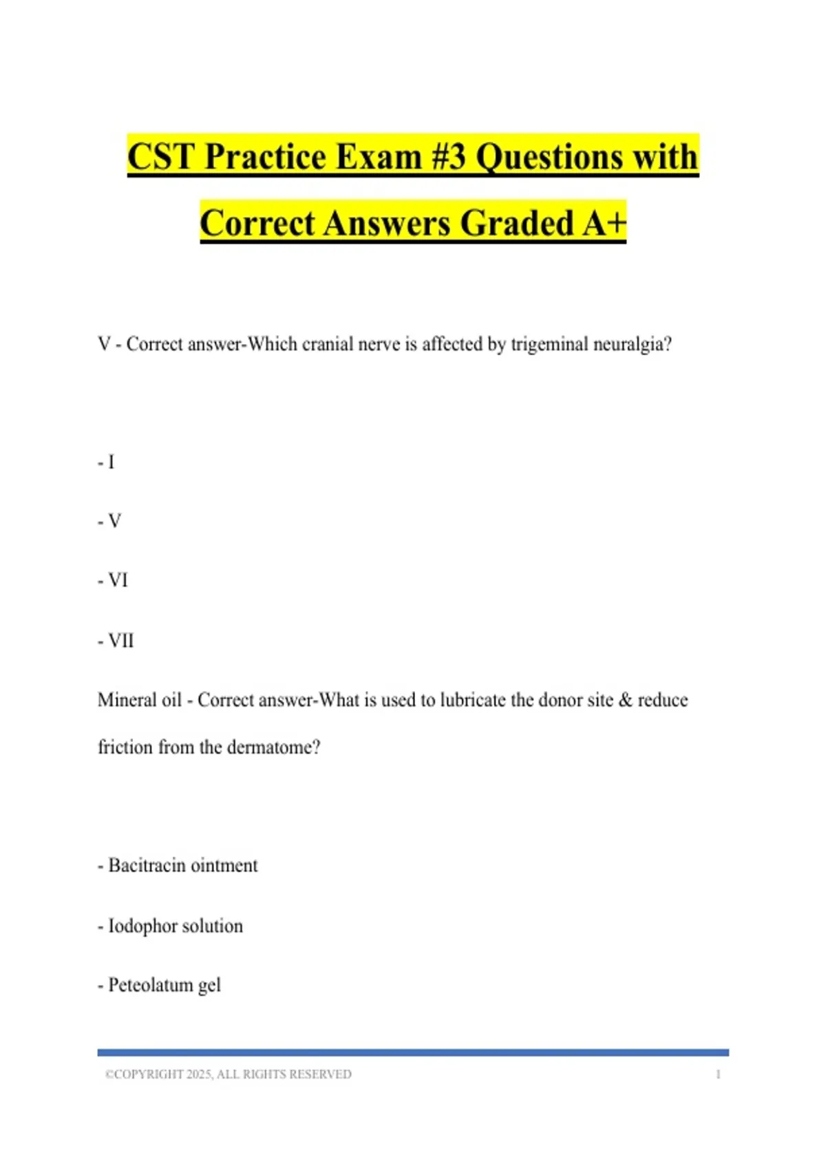 CST Practice Exam #3 Questions with Correct Answers Graded A+
