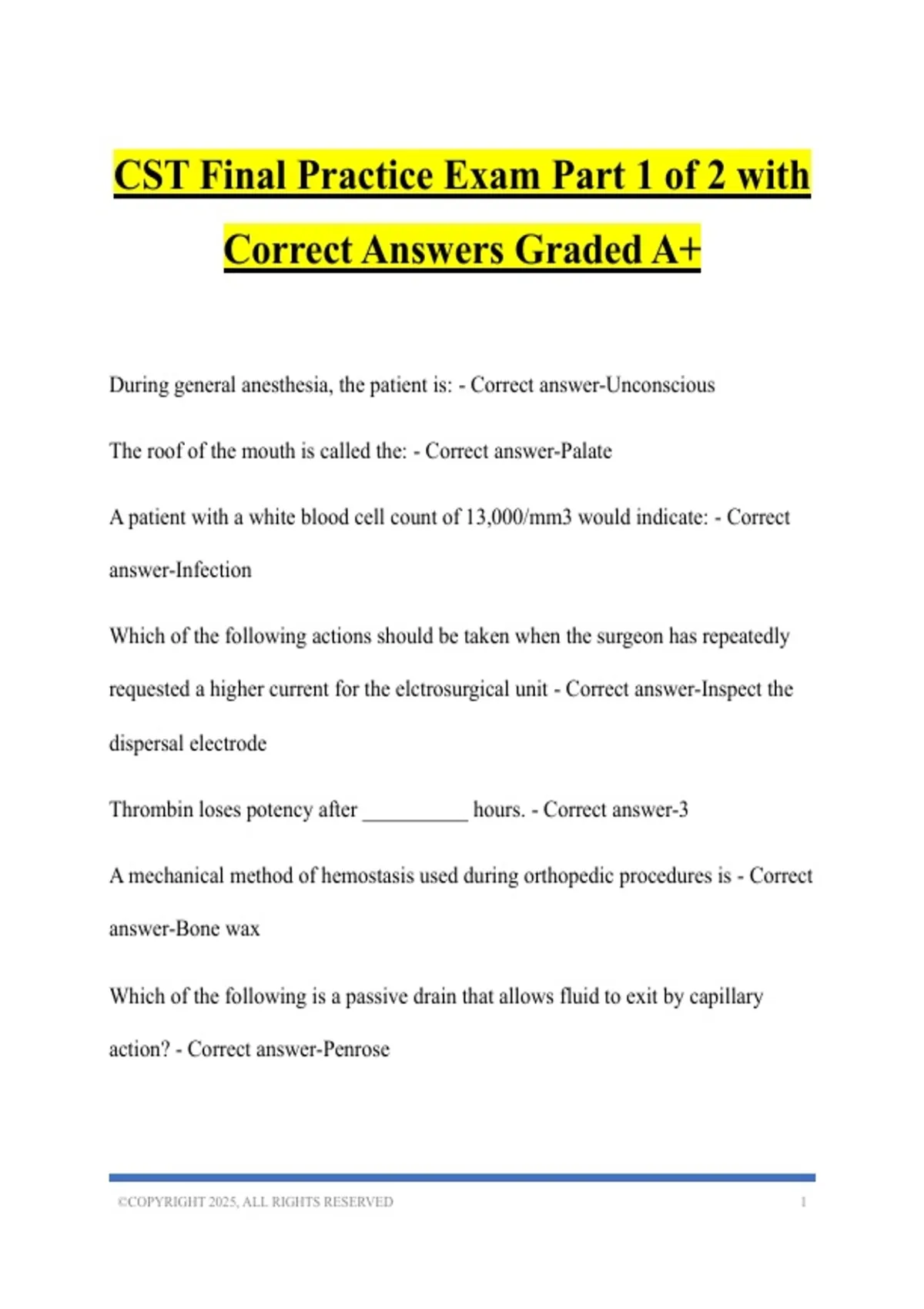 CST Final Practice Exam Part 1 of 2 with Correct Answers Graded A+
