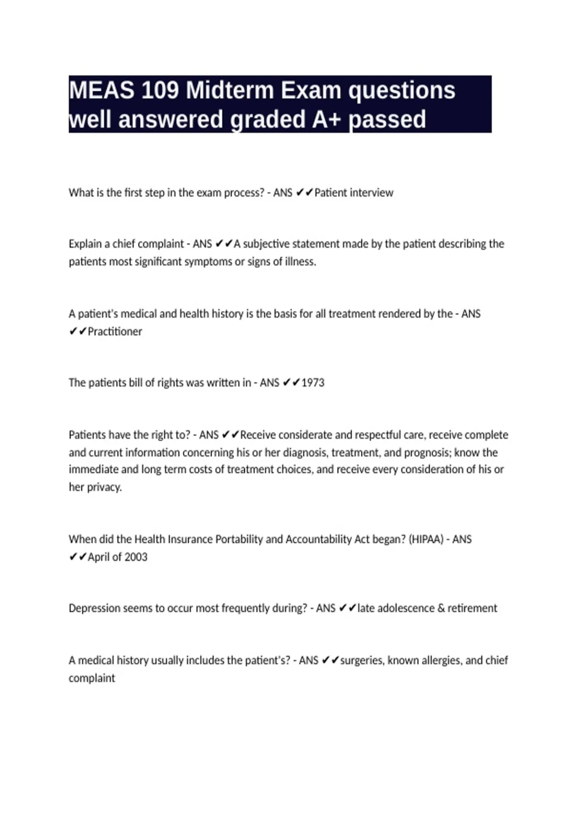 A medical history usually includes the patient's? - ANS ✔✔surgeries, known allergies, and chief