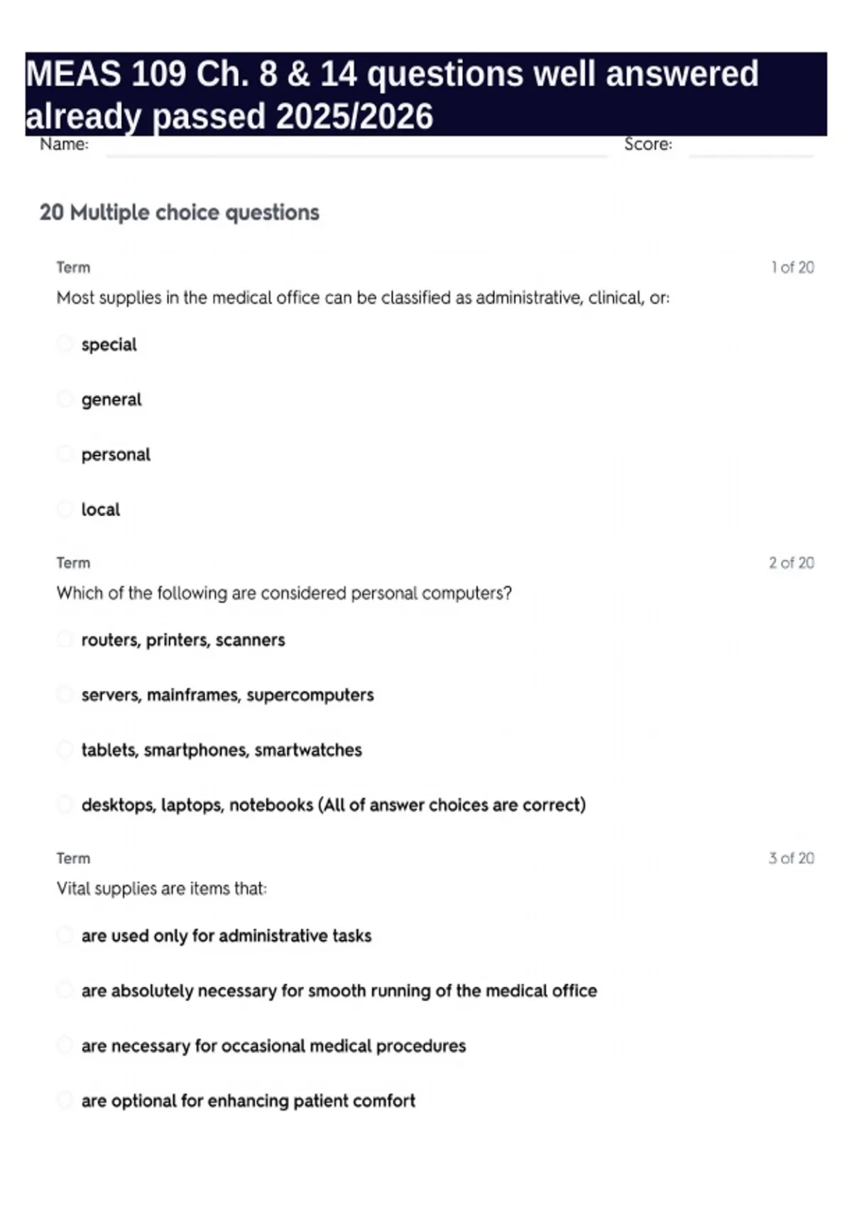 MEAS 109 Final questions correctly answered graded A+