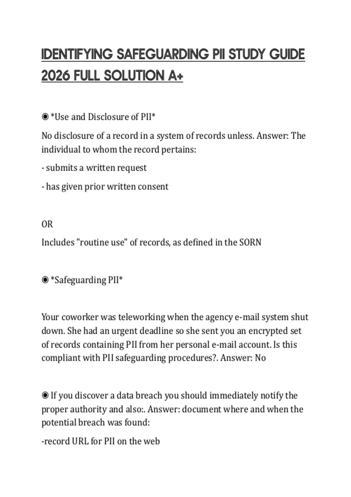 IDENTIFYING SAFEGUARDING PII STUDY GUIDE 2026 FULL SOLUTION A+