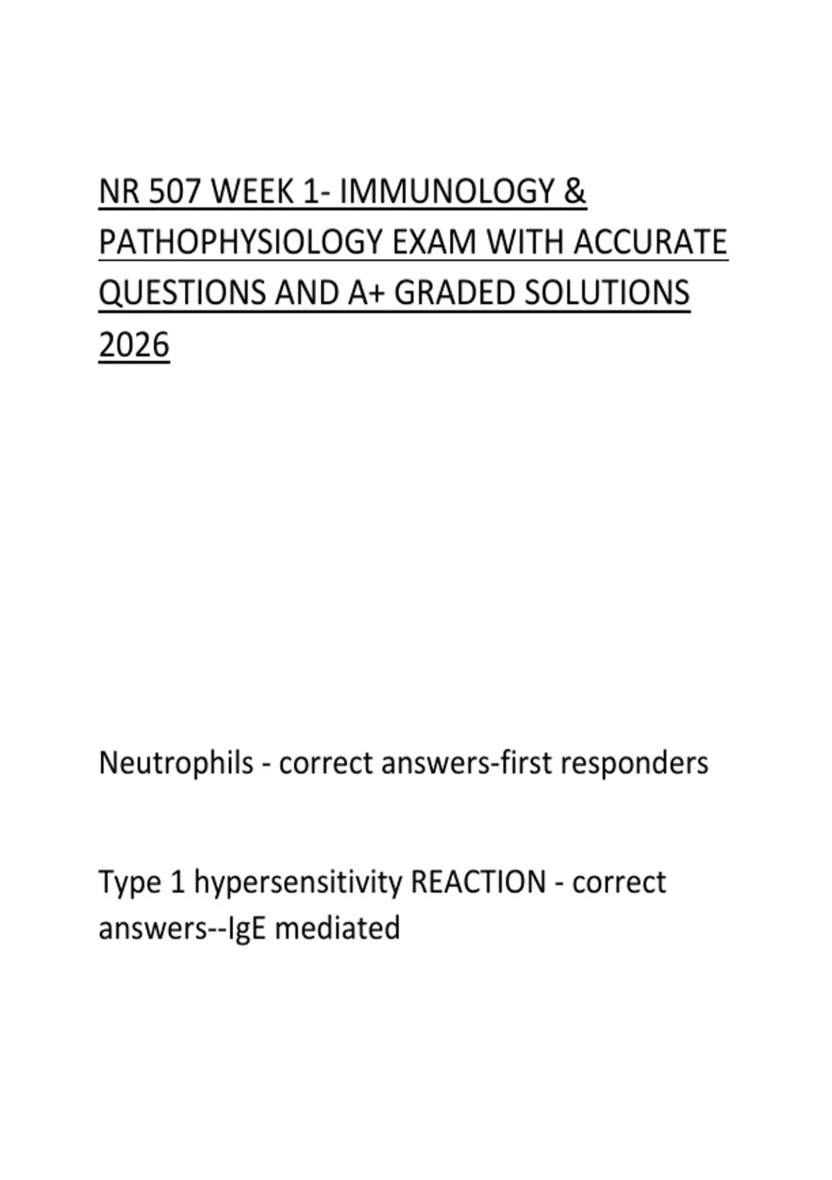 NR 507 WEEK 1- IMMUNOLOGY &