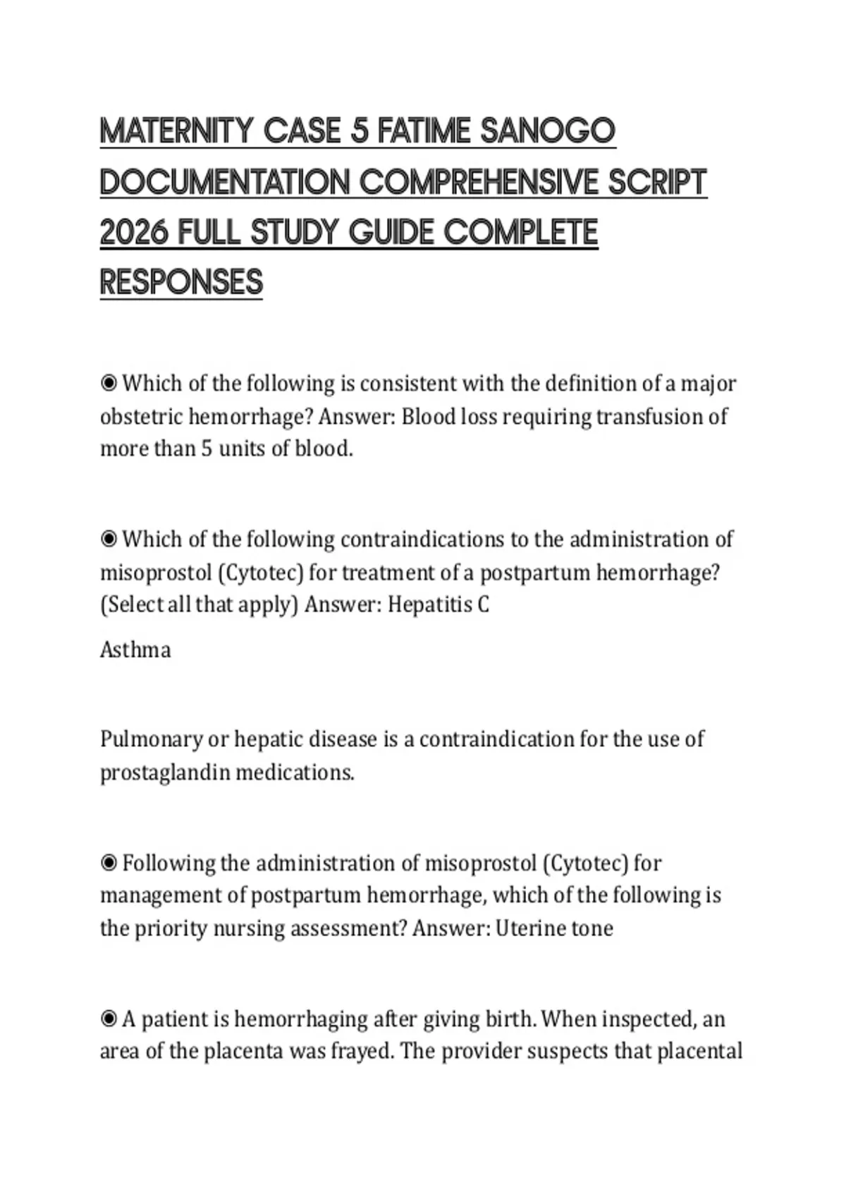 ◉ A patient is hemorrhaging after giving birth. When inspected, an