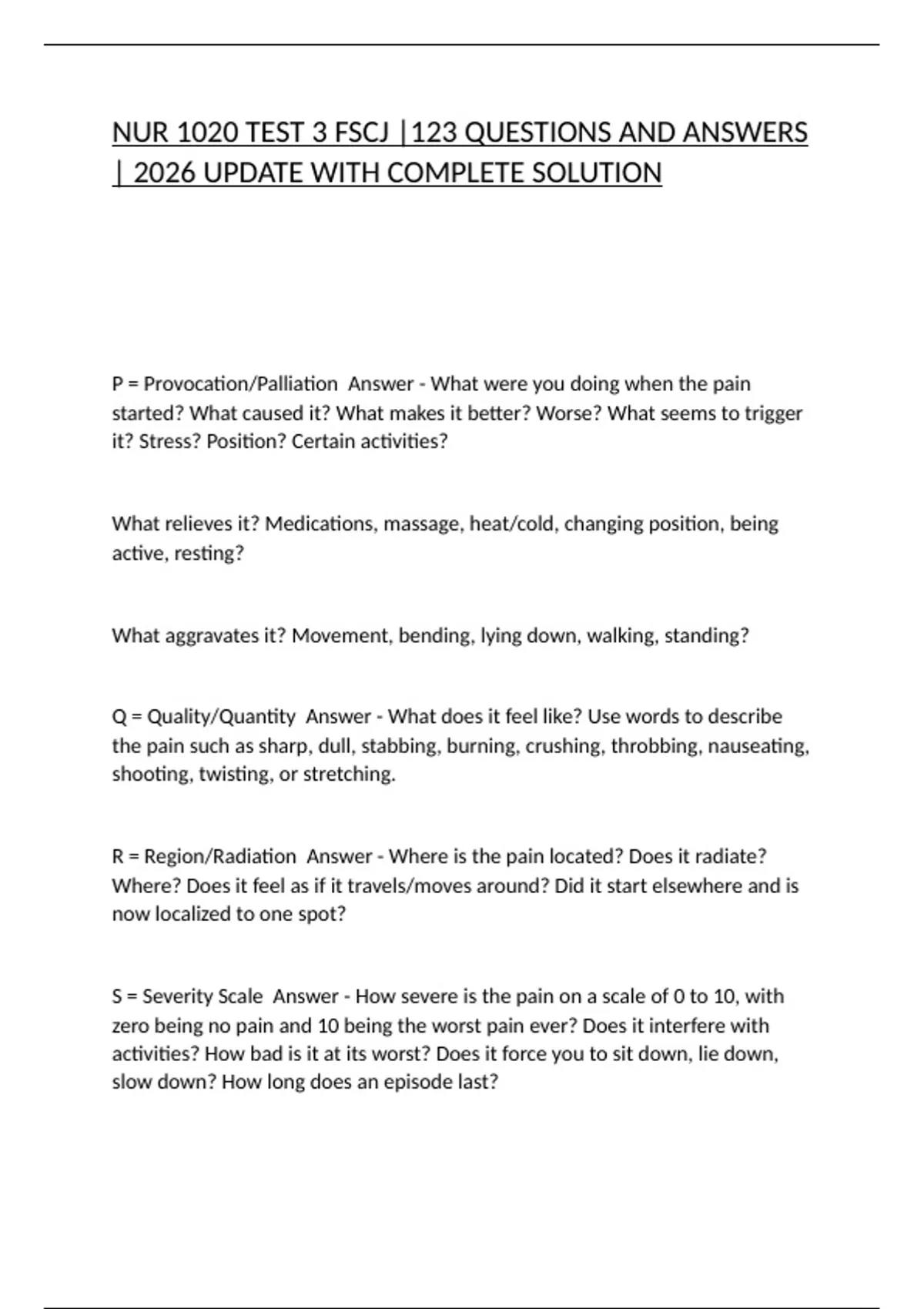 PQRST Answer - P = Provocation/Palliation