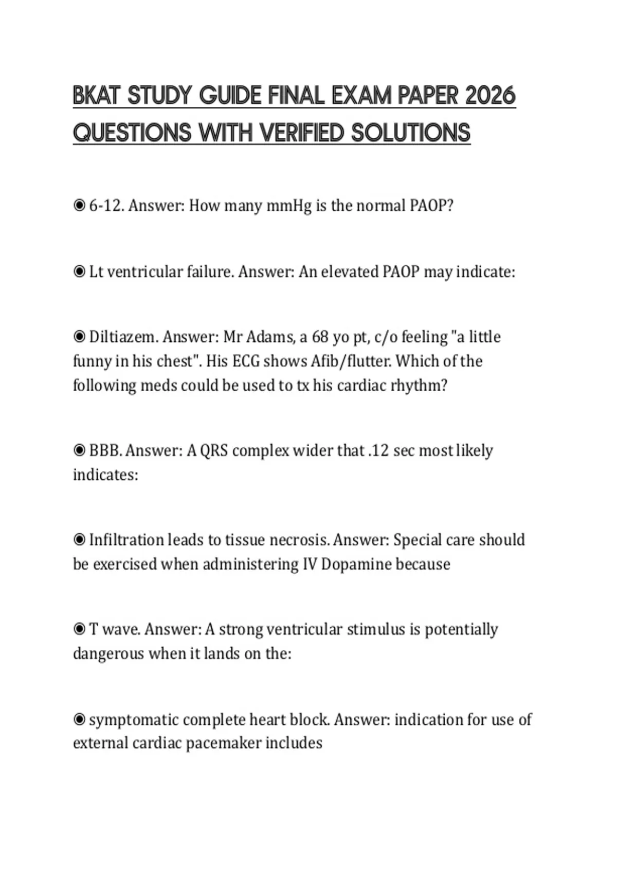 BKAT STUDY GUIDE FINAL EXAM PAPER 2026 QUESTIONS WITH VERIFIED SOLUTIONS