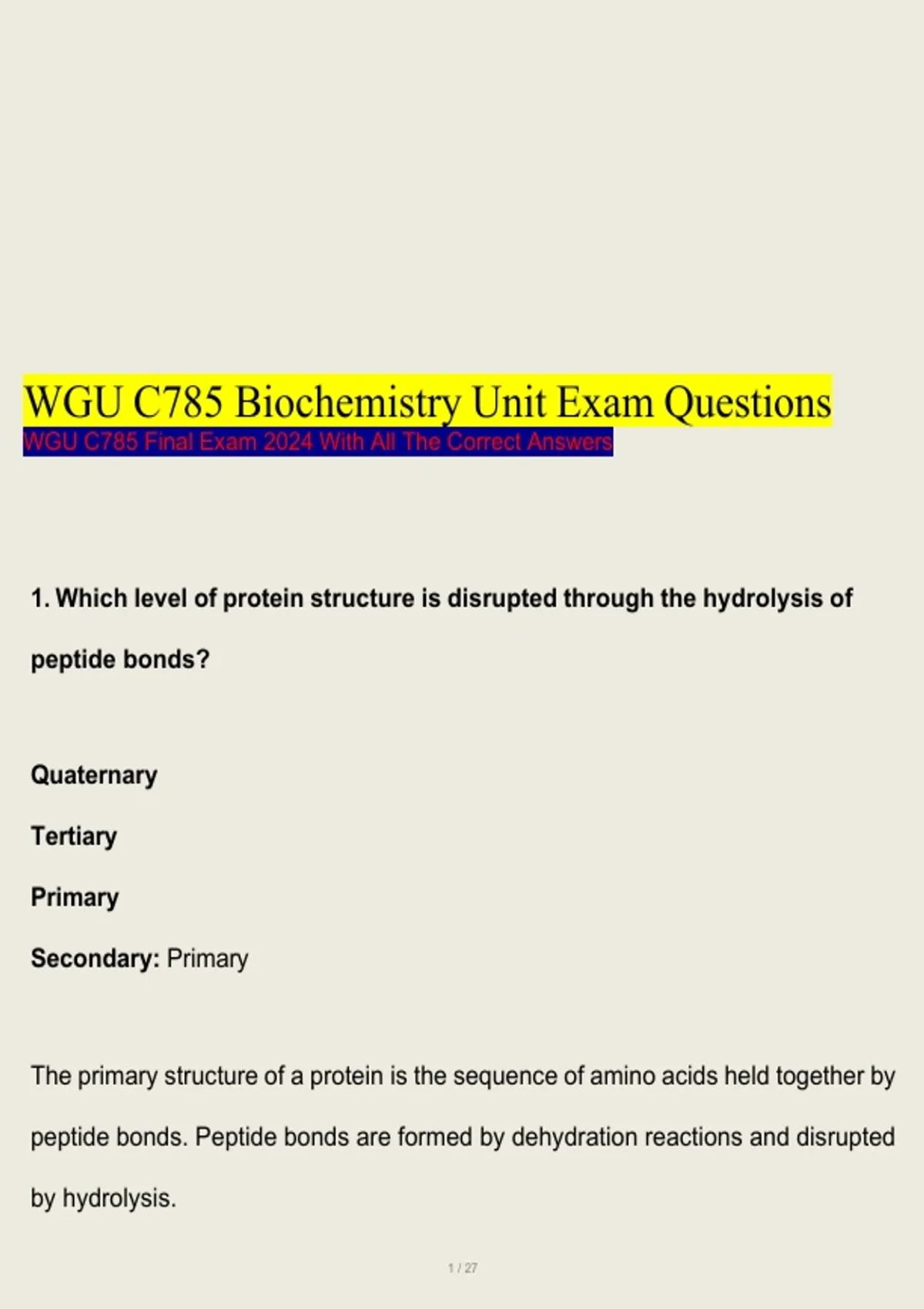 1. Which level of protein structure is disrupted through the hydrolysis of