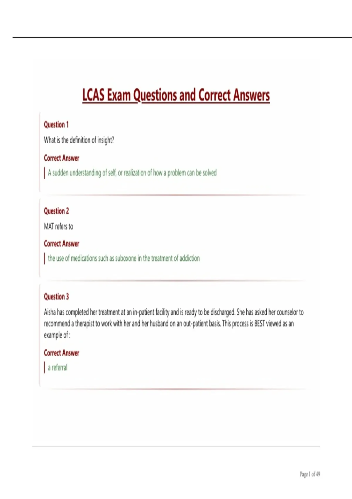 LCAS Exam Questions and Correct Answers.
