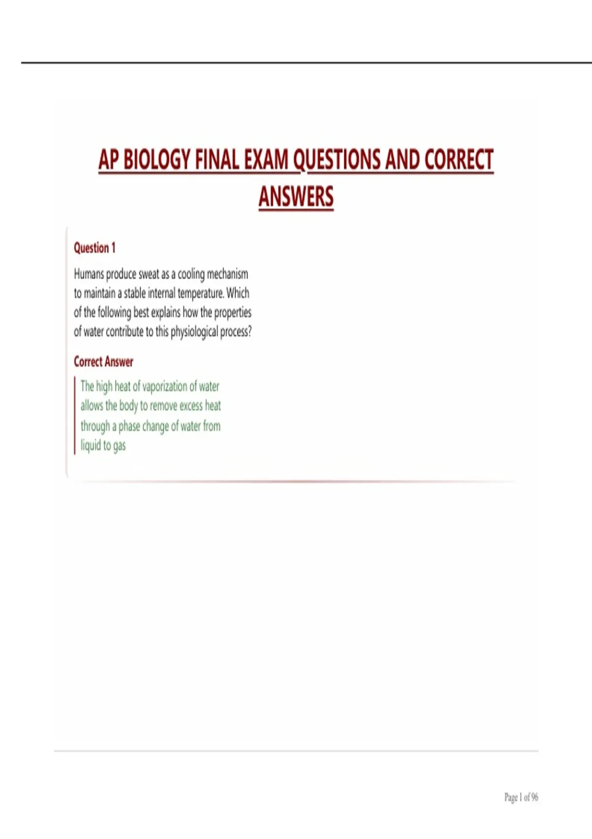 AP BIOLOGY FINAL EXAM QUESTIONS AND CORRECT