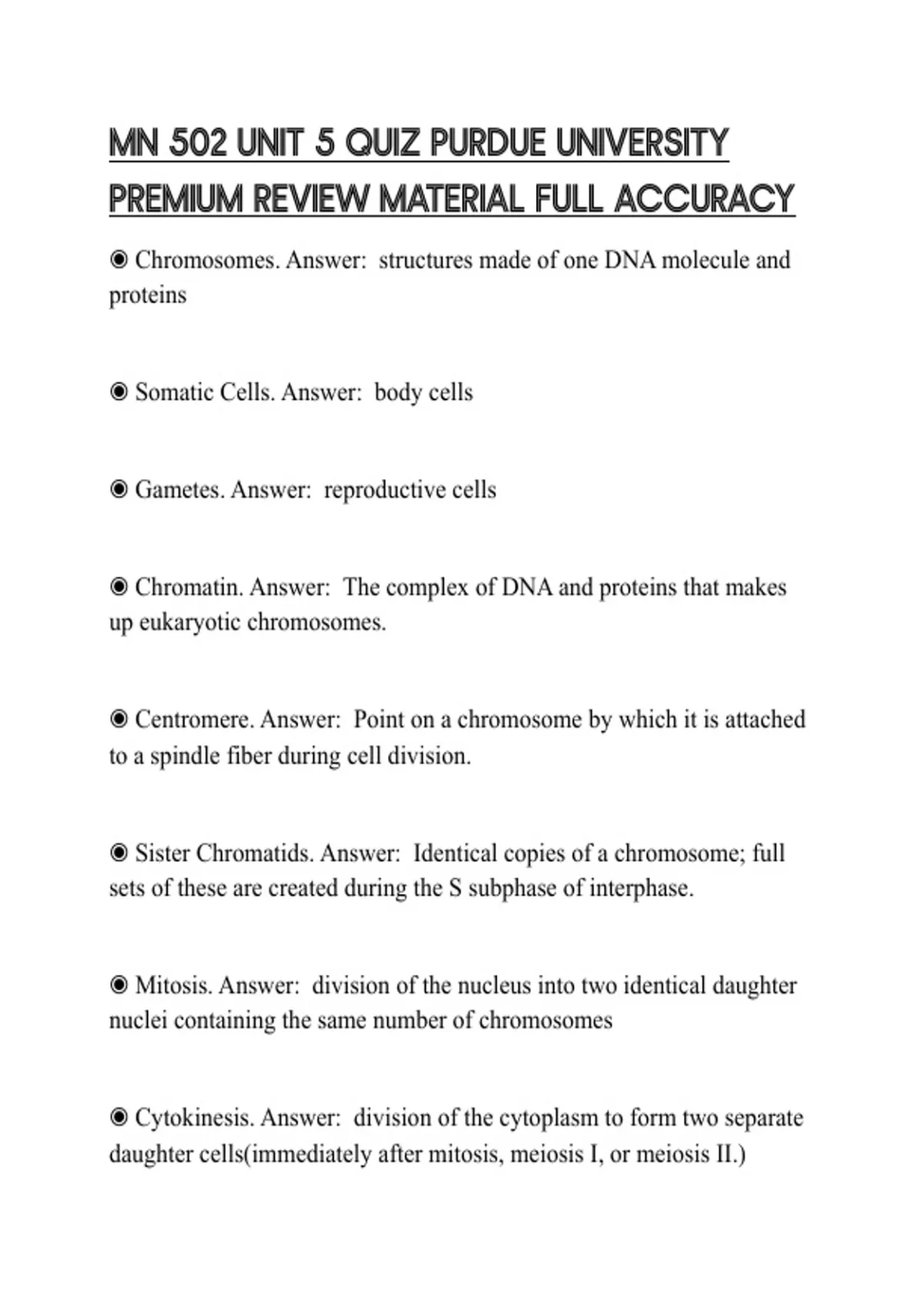 ◉ Sister Chromatids. Answer: Identical copies of a chromosome; full