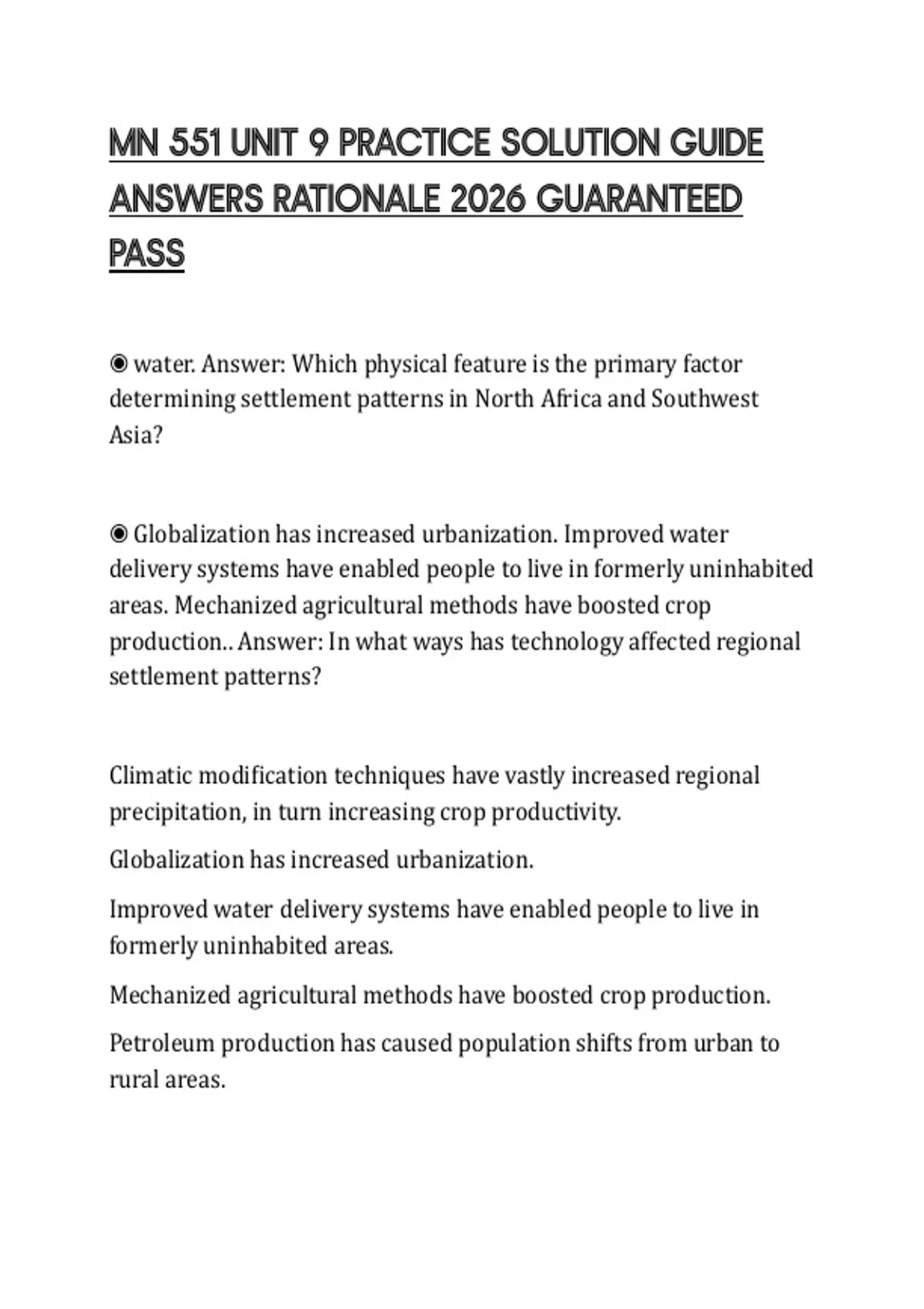MN 551 UNIT 9 PRACTICE SOLUTION GUIDE ANSWERS RATIONALE 2026 GUARANTEED PASS