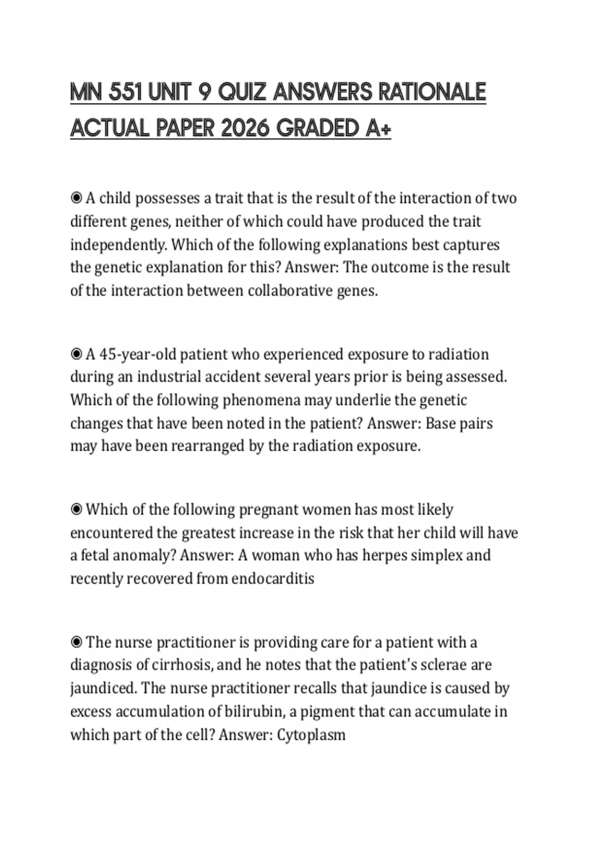 MN 551 UNIT 9 QUIZ ANSWERS RATIONALE ACTUAL PAPER 2026 GRADED A+