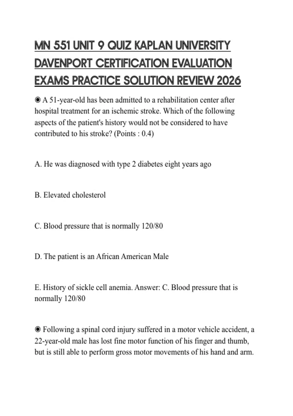 contributed to his stroke? (Points : 0.4)