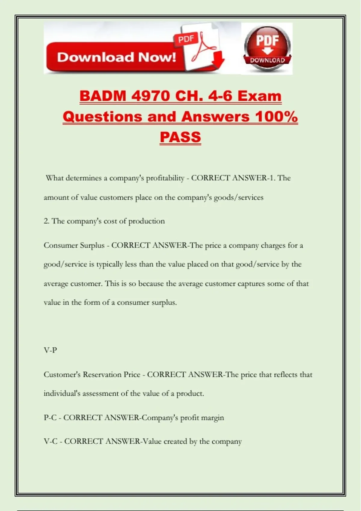 Customer's Reservation Price - CORRECT ANSWER-The price that reflects that