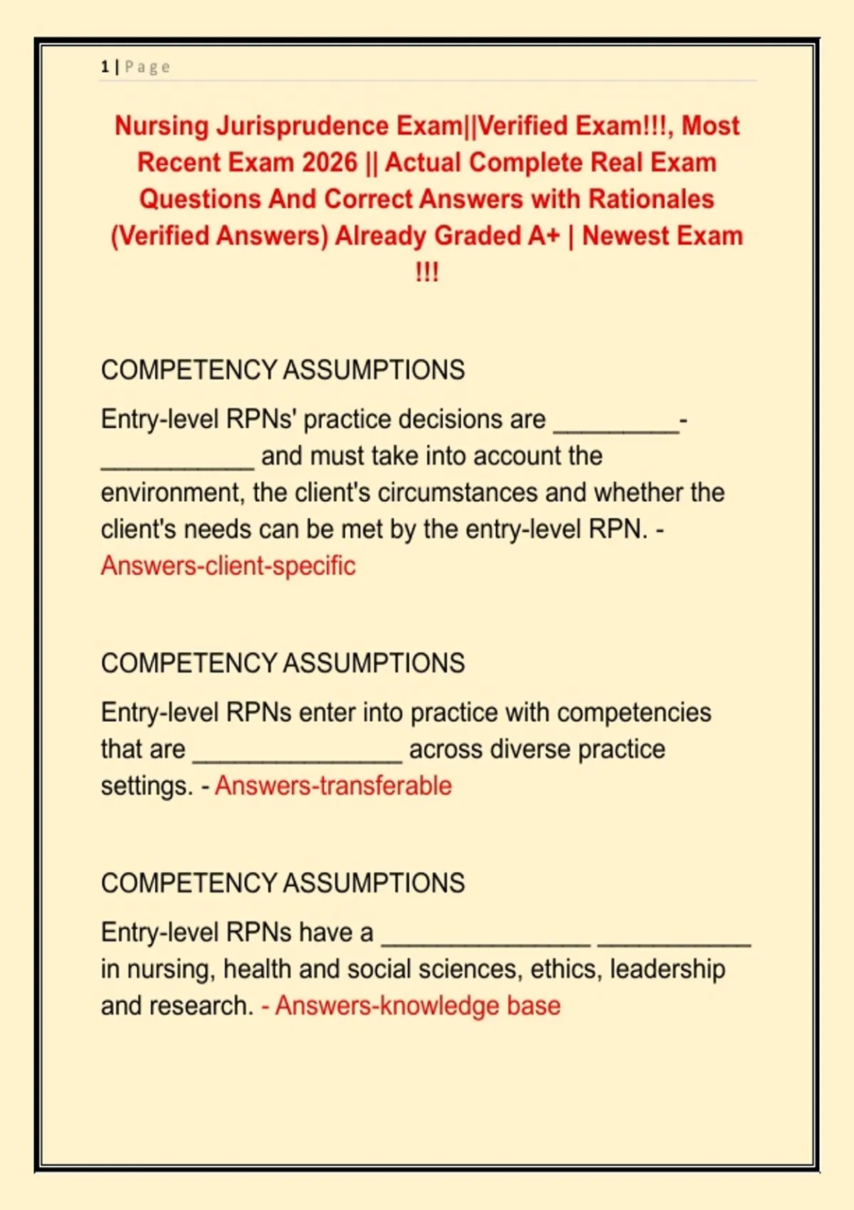Nursing Jurisprudence Exam||Verified Exam!!!, Most