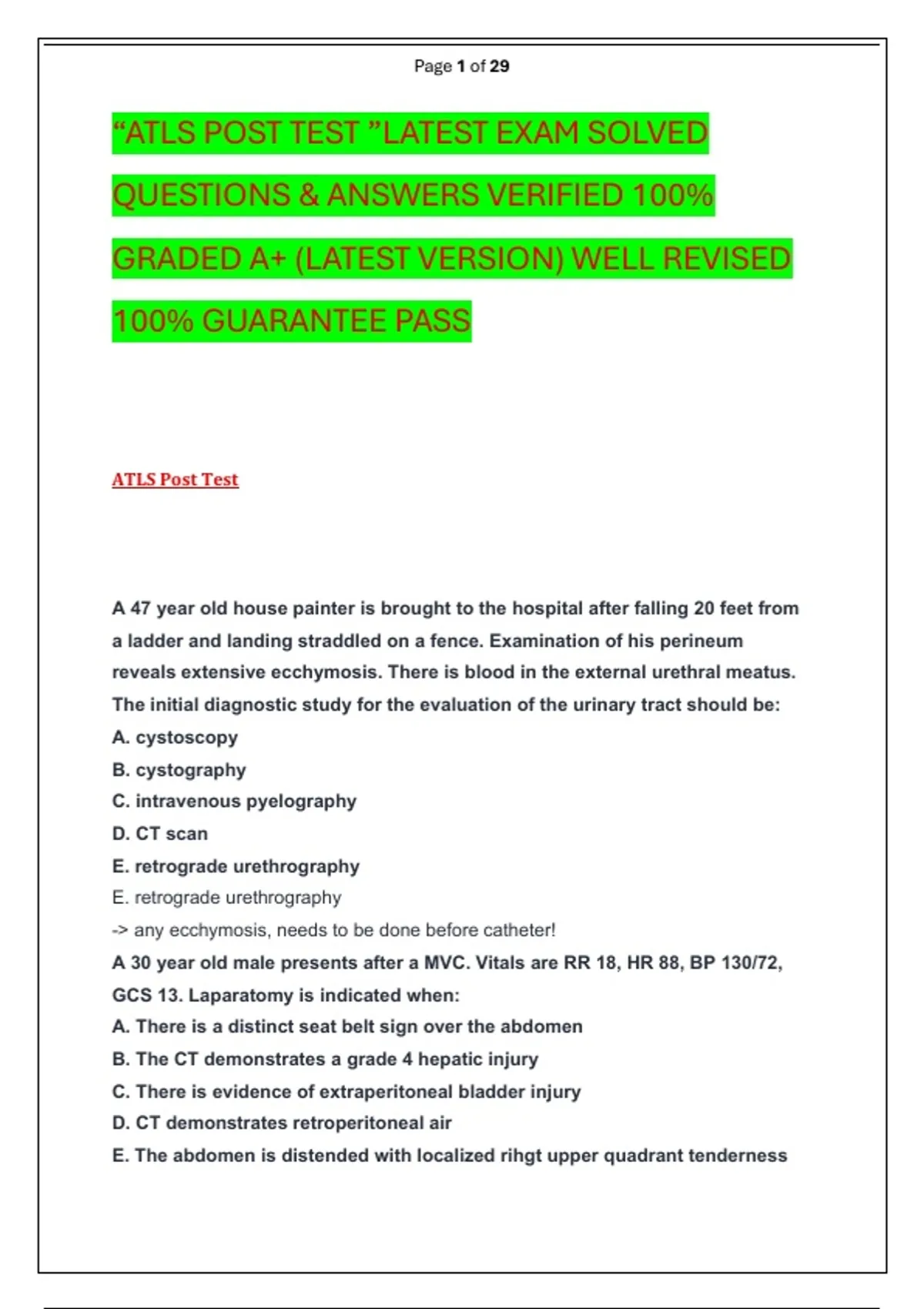 “ATLS POST TEST ”LATEST EXAM SOLVED