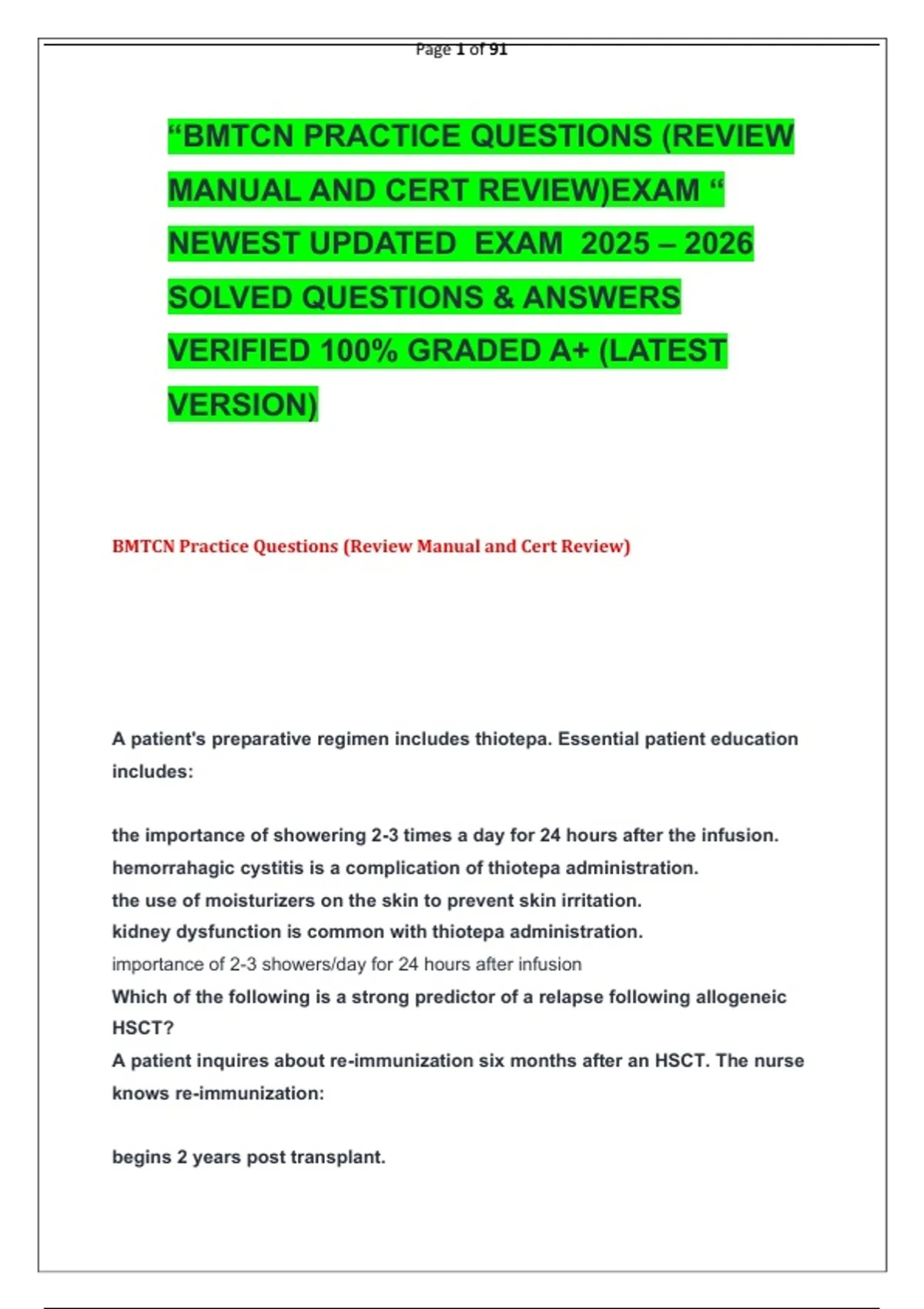 BMTCN Practice Questions (Review Manual and Cert Review)