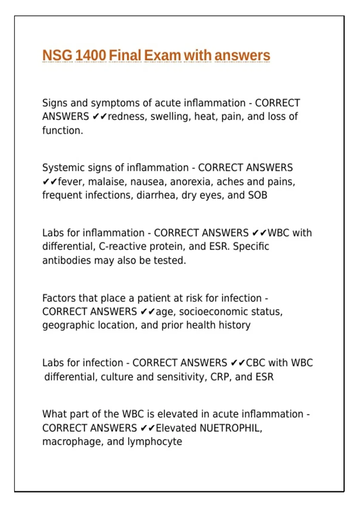 CORRECT ANSWERS ✔✔Elevated NUETROPHIL, |\ |\ |\ |\