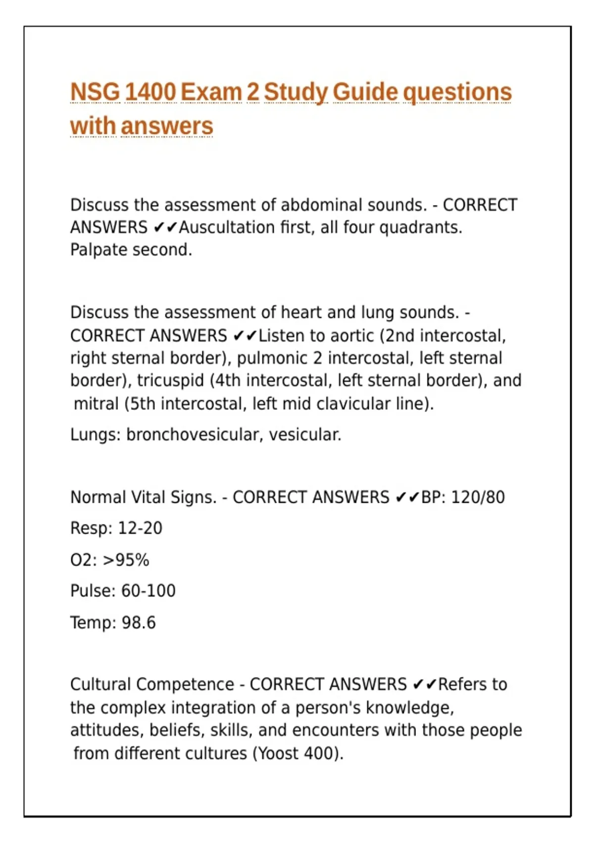 CORRECT ANSWERS ✔✔Listen to aortic (2nd intercostal,